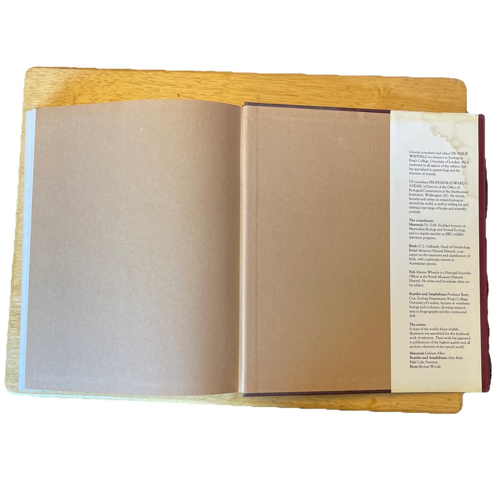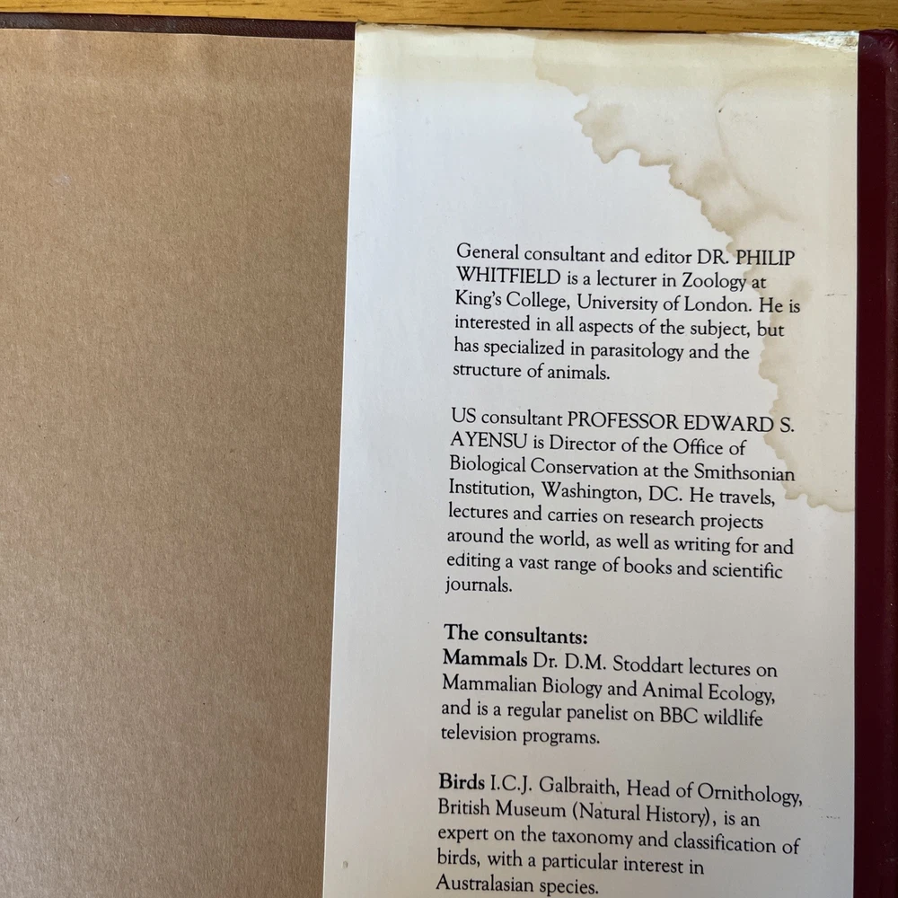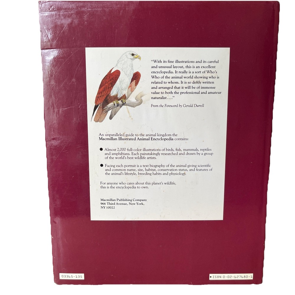 The book cover has a water stain on the back cover inside flap. Please see last photo. This vintage Macmillan Illustrated Animal Encyclopedia book is a treasure trove of information about the animal kingdom. With 600 pages of detailed illustrations and descriptions, it is perfect for readers of all ages, from children to adults. The book is beautifully bound in leather and laminated for durability. The first edition collector's book was published in 1984 by Macmillan Publishing Company and is a great addition to any bookshelf. The encyclopedia covers a wide range of topics, including the habits and habitats of animals from all around the world. The book is a great resource for anyone interested in animals and the natural world.