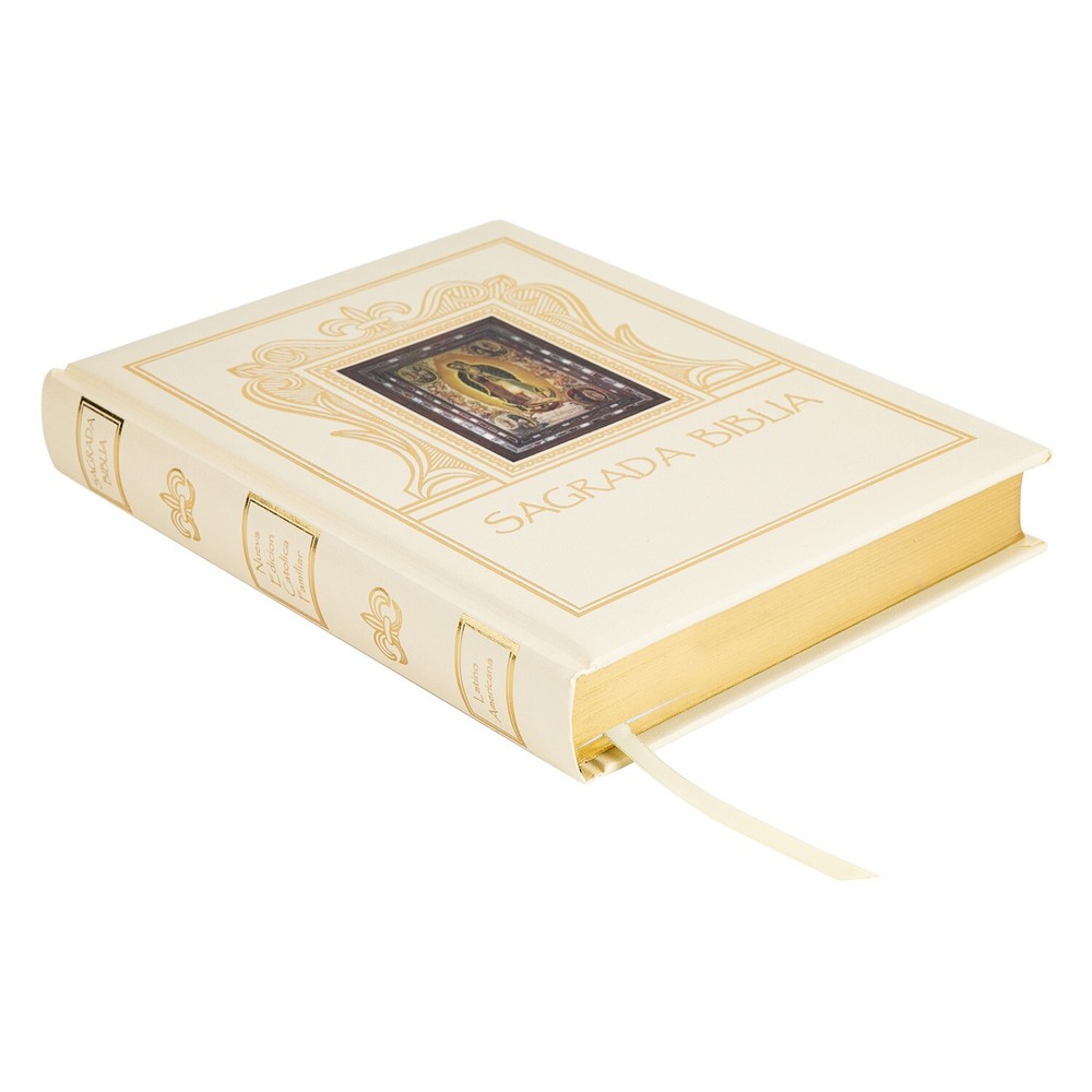 This stunning Catholic family Bible is a true heirloom—elegant with its cream padded cover, gold embossing, and gilded edges. The special wedding Scripture section makes it a cherished sacramental keepsake. Loved the illustrated Christmas and Easter stories, plus the delicate cream ribbon marker adds a luxurious touch. Perfect for prayer, reflection, and passing down through generations. Highly recommend!