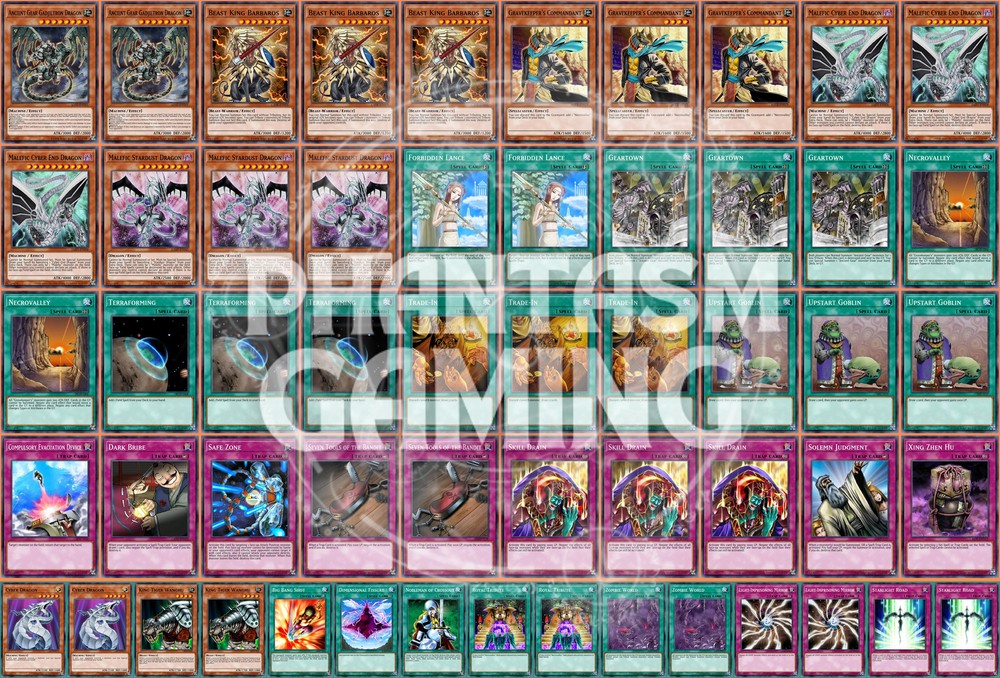 Deck Name: Malefic Stun (Librarian Mar 2011) B # Main Deck (40) 2 - Ancient Gear Gadjiltron Dragon 3 - Beast King Barbaros 3 - Gravekeeper's Commandant 3 - Malefic Cyber End Dragon 3 - Malefic Stardust Dragon 2 - Forbidden Lance 3 - Geartown 2 - Necrovalley 3 - Terraforming 3 - Trade-In 3 - Upstart Goblin 1 - Compulsory Evacuation Device 1 - Dark Bribe 1 - Safe Zone 2 - Seven Tools of the Bandit 3 - Skill Drain 1 - Solemn Judgment 1 - Xing Zhen Hu # Side Deck (15) 2 - Cyber Dragon 2 - King Tiger Wanghu 1 - Big Bang Shot 1 - Dimensional Fissure 1 - Nobleman of Crossout 2 - Royal Tribute 2 - Zombie World 2 - Light-Imprisoning Mirror 2 - Starlight Road You will receive all of the following cards listed above. Most cards will will be in near mint condition. In the case of certain older cards we will do our best but some cards may be light or even moderatly played in extreme condtions. Those conditions being the card has not been reprinted in a number of years and con no longer be easily purchased in light or near mint condition. Set, Rarity, and Edition will vary and cannot be special requested. These lists are constructed with least expensive rarities we have available in stock. All cards are play legal copies. Note: If purchasing a Yugioh Deck all Speed duel cards are 100% legal at all levels of play. Store Policies Here at PMG_LLC , we pride ourselves on having the best customer service around. If you have any questions or can't seem to find something that you want please do not hesitate to contact us. We will do our best to respond to all questions within one business day. Hours of Operation: Monday-Friday: 2:30pm - 10:00pm Saturday- 10:00am - 8:00pm Sunday 11:00am - 5:30pm Note: We are closed all national holidays. Info: Thank you for choosing PMG_LLC . We appreciate your business. We ship Monday through Friday to make sure you get your deck as quickly as possible. All orders priority orders can use combined shipping. In order to use the combined shipping your whole purchase needs to be checked out as one order. We ship once we have received your payment and payment has cleared. As always if you have any questions or concerns please feel free to contact us via email. Shipping Information: We ship Monday through Friday, barring national holidays during which the United States Postal Service is closed. If you purchase a card on Friday or Saturday please bear in mind it will not ship until Monday. US Shipping: First Class Mail : Free. Comes with tracking information. Priority Mail with Delivery Confirmation : $9.99 All orders are shipped in appropriate protective material inside bubble mailers. International Shipping: We do not offer international Shipping Return Policy: You must return items sold and fulfilled by PMG_LLC within 30 days of delivery to be eligible for a refund. Returns which are damaged in the mail due to improper return packaging will receive partial refunds. We will process a full refund for all items returned in their original condition. In order for us to process your full refund you must include the full name associated with the order as well as the eBay order number inside the return packaging. We will not process returns which do not include the buyer's name and order number. Requirements: Please return items with the original plastic packaging. Failure to do so may result in a partial refund. Also you must inform us of any returns you may wish to process before sending them back. Any items simply send back to us without prior contact will not be eligible for refunds. Important Notes Remember that to benefit from our domestic combined shipping on priority orders you must to pay in a single payment. If you place two separate priority orders you will be charged the $7.50 shipping fee for both orders. If you place multiple orders for Priority shipping you will be charged the corresponding shipping costs for each order, even if you place the orders on the same day. We do not refund shipping costs as we tend to package orders throughout the day and may not notice that you would otherwise have qualified for combined shipping. We want to provide you with 5 Star service and earn your Positive Feedback, so if for any reason you are not happy with your transaction, contact us before leaving feedback. Business Day - Our business day runs from Monday to Friday from 9am to 4pm, excluding US national holidays. Any orders placed or payments cleared less than 4 hours before the close of business will be considered orders from the following business day.