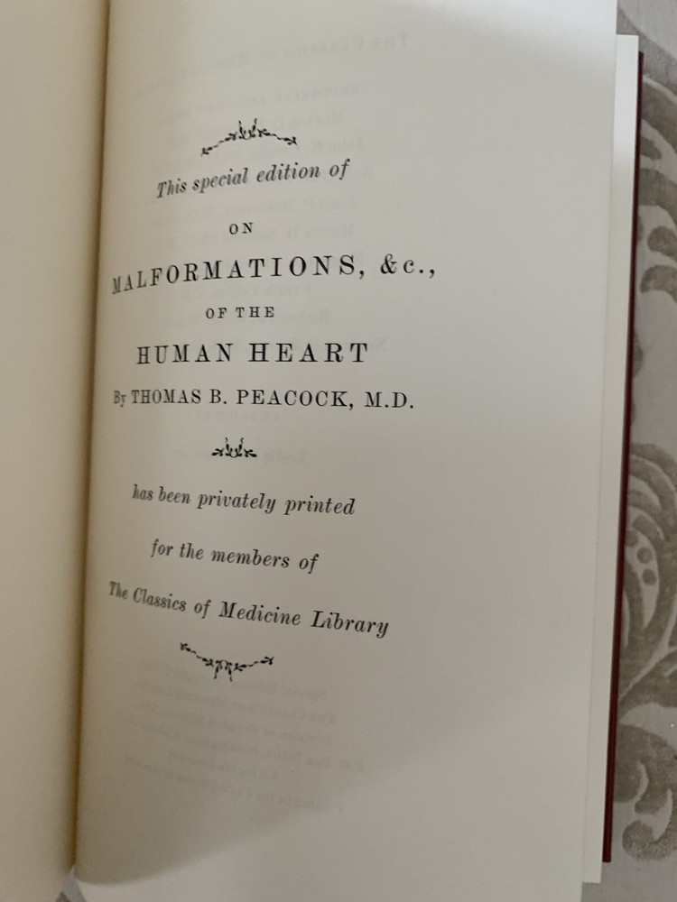 - The Classics Of Medicine Library - Leather Bound - Malformation Of The Human Heart - Fine Condition (Like New)...