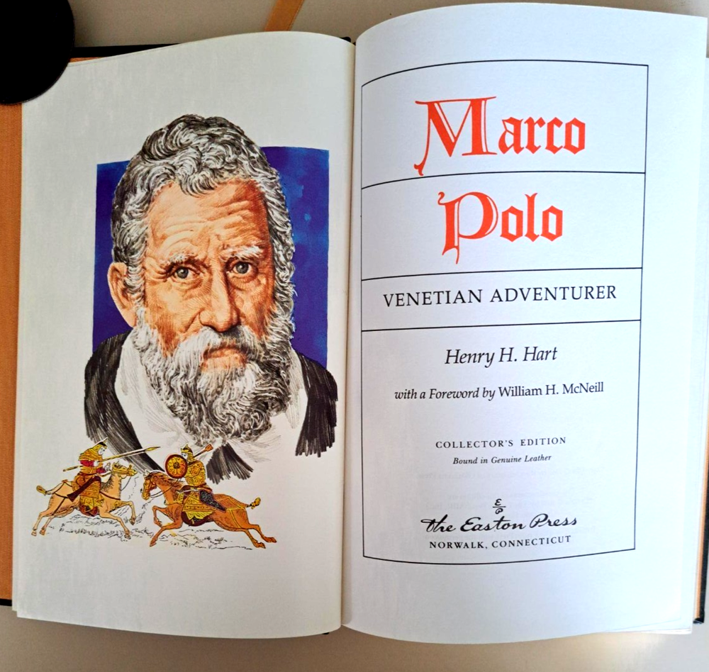 Marco Polo: Venetian Adventurer by Henry H. Hart (Easton Press, 1989), Like new text, Leather bound, few light scuffs spine edge on back board/very minor general shelf wear. Ships by media mail.