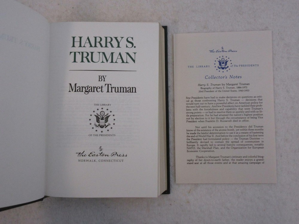 Margaret Truman HARRY S. TRUMAN Easton Press Presidents Library Series Includes Notes insert. Appears unread. Please examine photos for details. Please examine photos for details. Condition: We strive to describe and photograph the condition of every item as accurately as possible. Photos are of the actual item that is being sold. Please examine the photos carefully for any condition details and possible flaws. Best Offers: Items are available for offers only after being listed for 30 days. We consider all offers in relation to current market values. We try to respond almost immediately to most offers. Most of our counteroffers are firm but we are open to bargaining. Shipping for US Customers: We combine shipping. When ordering multiple items from us please request a total before paying. We charge postage based on weight plus $1 for each eBay listing. All of our orders are packed carefully to prevent damage during shipment. We ship most of our items within 24 hours. Shipping for International Customers: All international orders are shipped via Ebay's Global Shipping Program. IF AN INTERNATIONAL CUSTOMER IS INTERESTED IN ORDERING MORE THAN ONE ITEM please do not Buy It Now or use the Make An Offer option on the listing. Rather message us first with a list of the items desired along with any offers. After we agree on prices we will combine all the orders into a single listing at the agreed upon total price. This will save you significantly on the cost of shipping. Contact Us: We are available 7 days a week and are happy to answer any questions you may have. THE simple solution for eBay sellers.