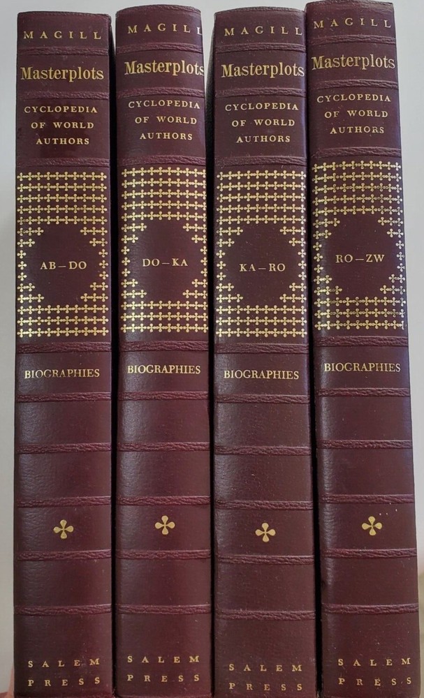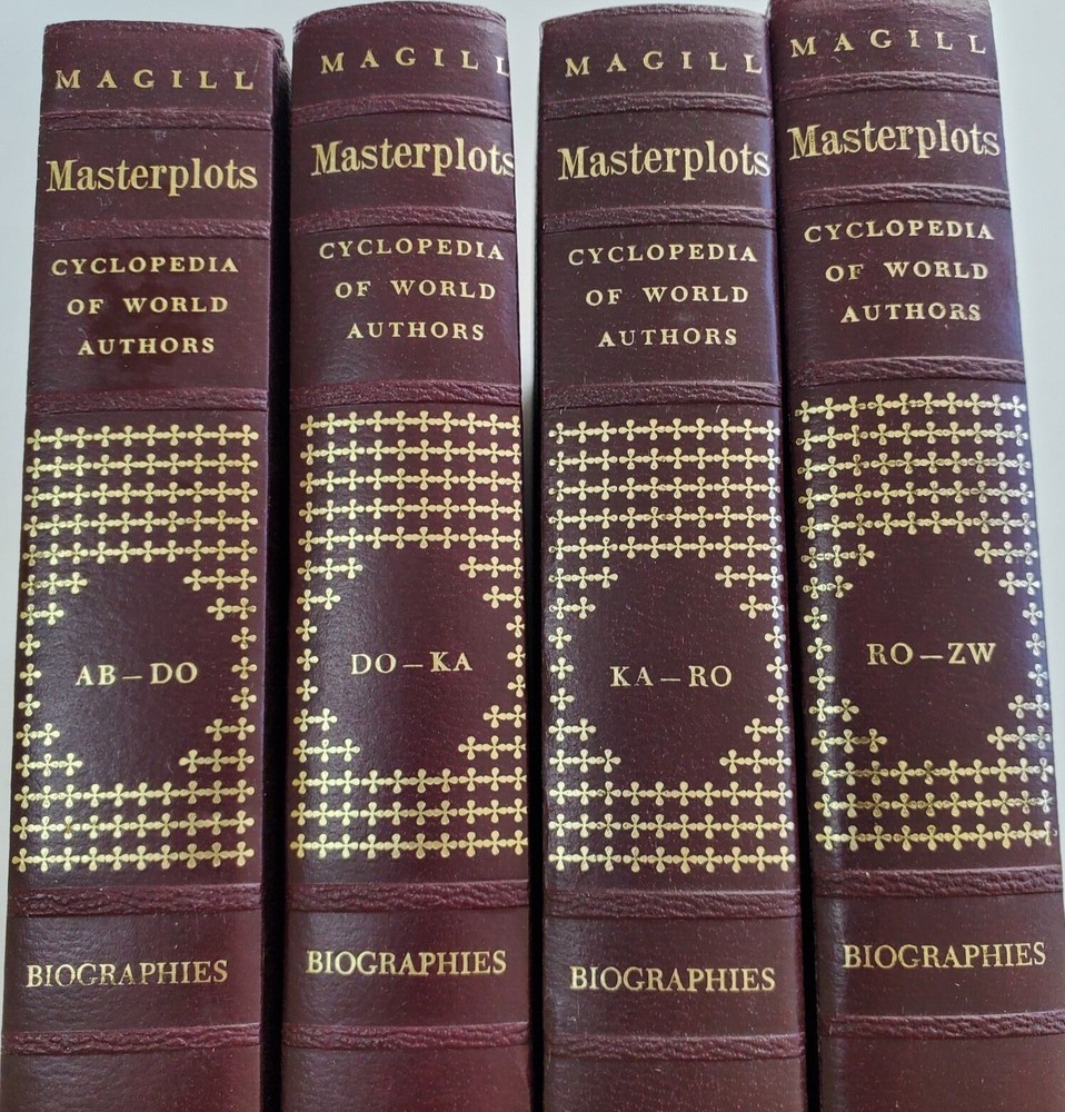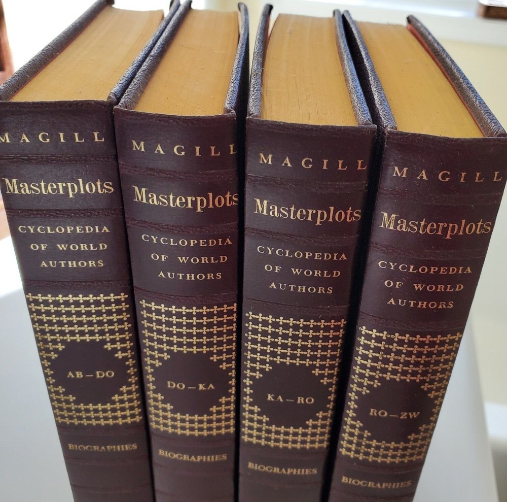 You are bidding on 4 great books titled: Masterplots Cyclopedia of World Authors. Leather bound Magill 4 Books. Wonderful collection for your library!! Good luck bidding!!...