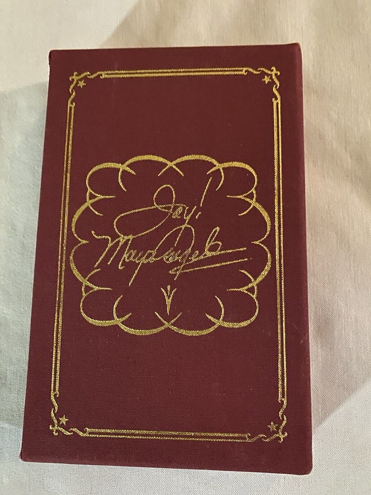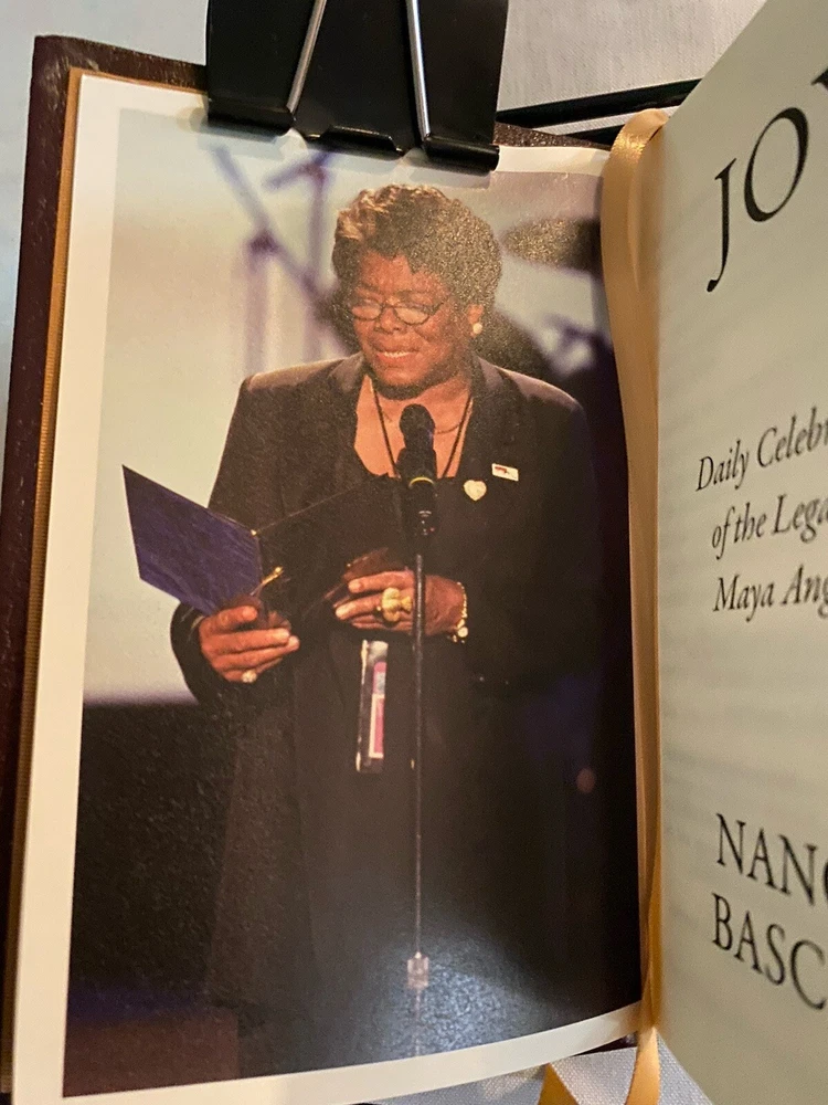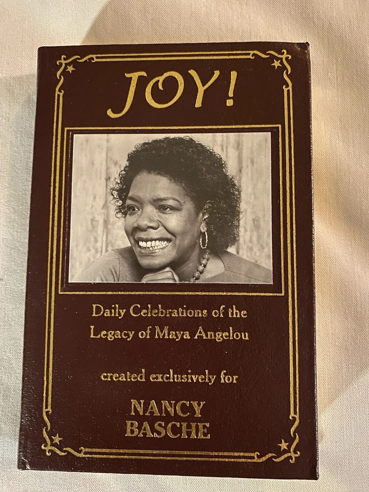 Experience the joy of reading with the limited edition "JOY! Daily Celebrations Of The Legacy Of Maya Angelou 2017 Leather Slip Case." This beautiful book is a collection of inspirational reflections for each day of the year from inspiring author Maya Angelou. It is written in English and published by MBI, Inc in 2017. This particular book has the name: Nancy Basche printed on the title page. The book is surrounded by a coordinated leather slip case and has a special collector's edition attribute. It is a great addition to any book collection, especially for those interested in inspirational topics. This book is a must-read for fans of Maya Angelou and her work. There is a handling period of 2-3 business days and it will be shipped via USPS MEDIA MAIL.