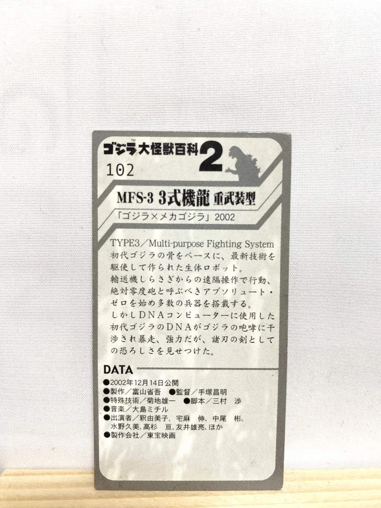 You can get a discount if you buy the products in bulk Please select multiple items you would like to purchase and send us a message. I would be happy if I could make a good deal with you. Send us the URL of the product you want. If you don't know, send us the product number. "a-ri-ga-to-u" I live in Tokyo, Japan. I sell Japanese original goods and character goods. Please feel free to say "Hi" if you find the item that you want. Description [Title] Mecha Godzilla Monster Encyclopedia 2 Card SFX TOHO TCG Japan Rare No.102 [Condition] Used."" Please judge with photos."" Shipping Economy Shipping [ No Tracking number , Japan Post Airmail] : Cost Free, About 2-3 weeks to arrive --Shipping-- Shipping from Japan Ship to Worldwide Airmail (No insurance & No tracking number, about 7-14 days to USA.) tracking number +4$ (Insurance & Tacking number, about 7-14 days to USA.) EMS +30$ (insurance &tracking number 3-7 days to USA.) International Buyers - Please Note: Import duties, taxes and charges are not included in the item price or shipping charges. These charges are the buyer's responsibility. Please check with your country's customs office to determine what these additional costs will be prior to bidding/buying. These charges are normally collected by the delivering freight (shipping) company or when you pick the item up - do not confuse them for additional shipping charges. We do not mark merchandise values below value or mark items as gifts - US and International government regulations prohibit such behavior.