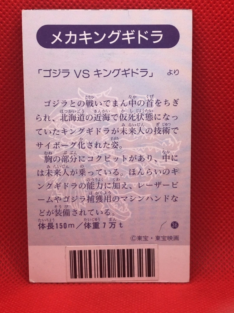 Vintage Mecha King Ghidorah 4inch Barcode Battler No.36 Rare Collectible Card