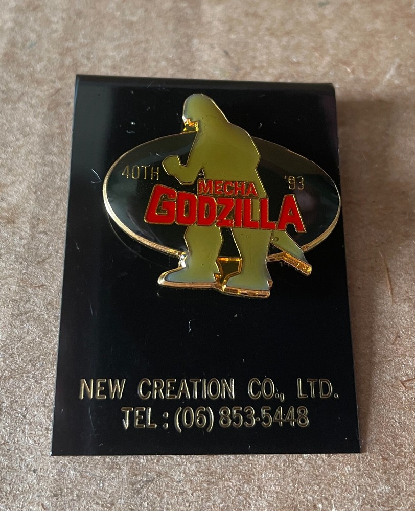 PLEASE READ THIS DESCRIPTION CAREFULLY.. Another nice 1" tall x 1 1/8th" wide cloissione pin featuring Mecha-Godzilla and celebrating his 40th anniversary. Real nice shape, made by New Creations, licensed by Toho and dated 1993. Comes on a thin plastic backer card with metal backing clip. I have also listed the Godzilla 40th anniversary pin from this series. See my other auctions. NOTE:... I am not responsible for "customs" delays and/or taxes on items shipped overseas.