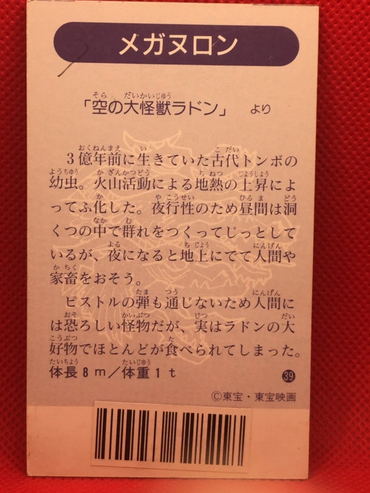 Vintage TOHO Meganuron Radon Godzilla 4-inch Barcode Battler rare No.39 card