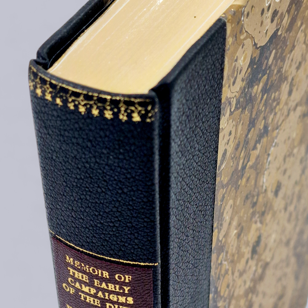 Memoir of the early campaigns of the Duke of Wellington in Portugal and Spain John Fane, 11th Earl of Westmorland was a British soldier, politician, diplomat, composer and musician. He was educated at Cheam School and then at Harrow from 1797 to 1799. On 9 May 1803, he was appointed a deputy lieutenant of Northamptonshire, and after the breakdown of the Peace of Amiens, he was commissioned a lieutenant in the Northamptonshire Militia on 30 June 1803. He entered the regular army as an ensign in the 11 th Foot on 24 December 1803. In 1806, he was sent abroad, serving as assistant adjutant general to the forces in Sicily and Egypt from 1806 to 1807. He was with Admiral Duckworth's fleet during the Dardanelles Operation and then took part in the Alexandria expedition of 1807. In 1808 he joined the army in Portugal led by Sir Arthur Wellesley and fought at Roliça and Vimiero in August 1808 and Talavera (1809). DESCRIPTION Octavo. 240 pp, set in Brunel Text Roman No 2 and printed on Zuber Rieder pure cotton paper in an edition of 25 copies (this is no 1). Bound by hand in leather with marbled boards. Attractively bound by hand, titles, and decoration to spine gilt, glit top edge. CONDITION Brand new copy in a fine binding. GUARANTEE We offer a full money back guarantee on our descriptions. Please ask for details and conditions.