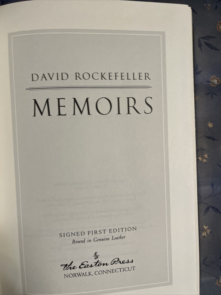Memoirs, David Rockefeller, Easton Press, Signed First Edition, copy 488 of 1,300, Leather Bound.