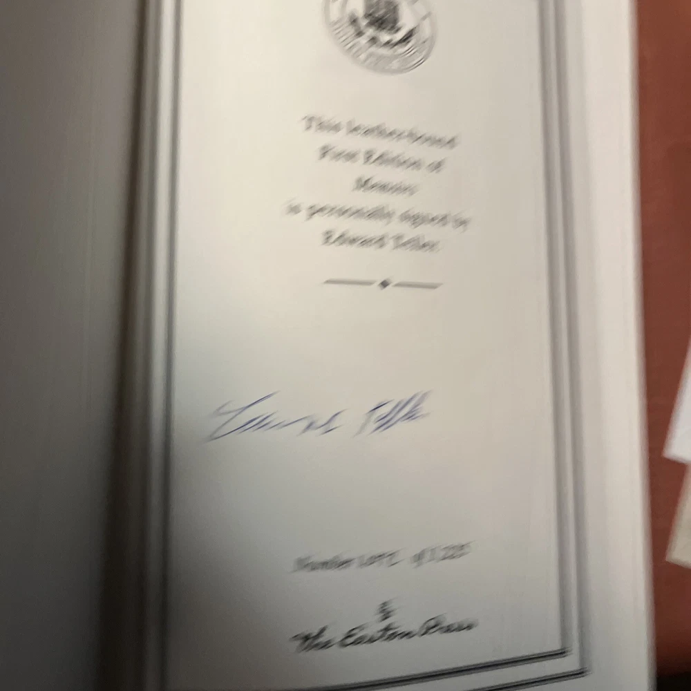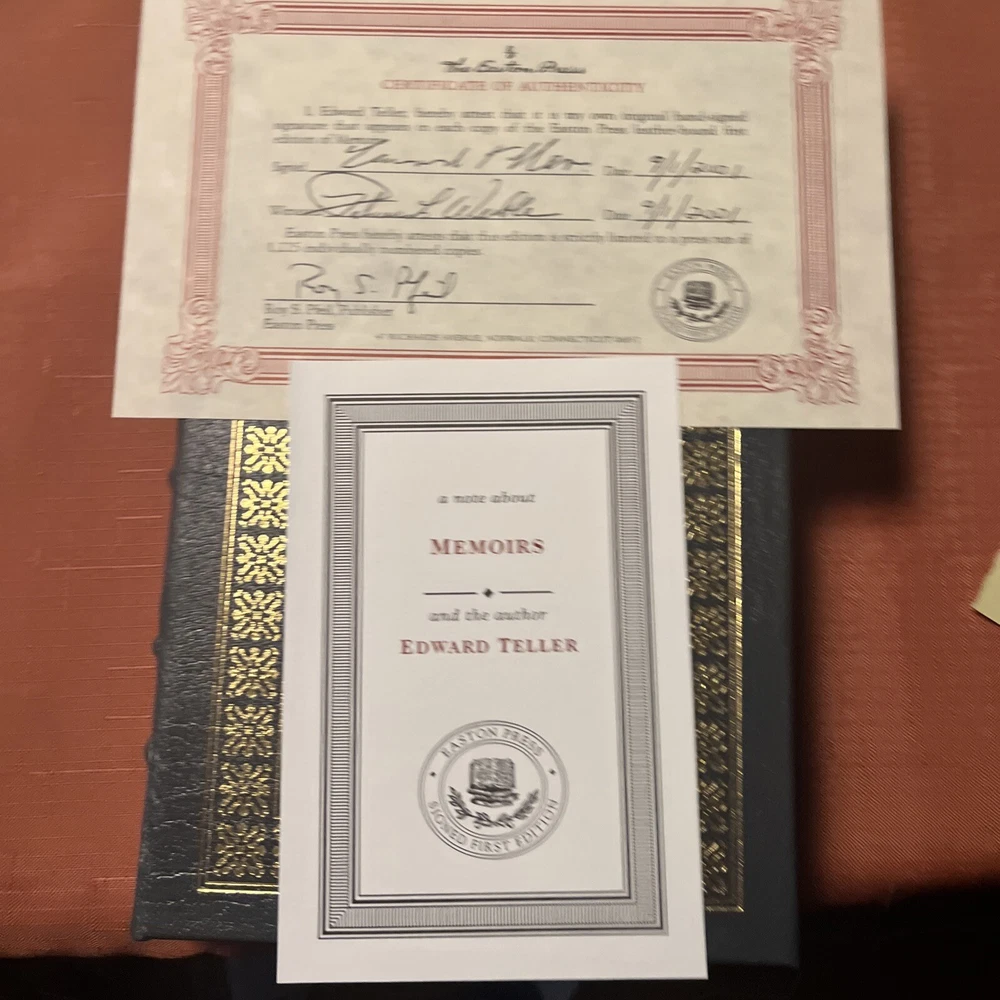Memoirs, Edward Teller, Easton Press, Signed First Edition, Genuine Leather Bound, Number 1,072 of 1,225, Like New.