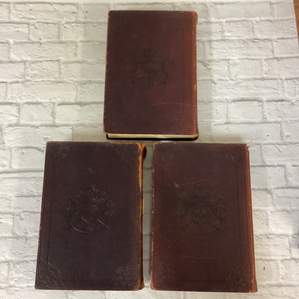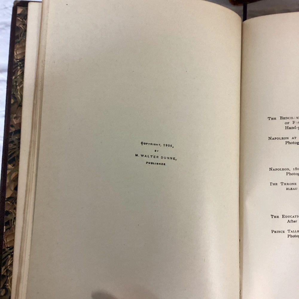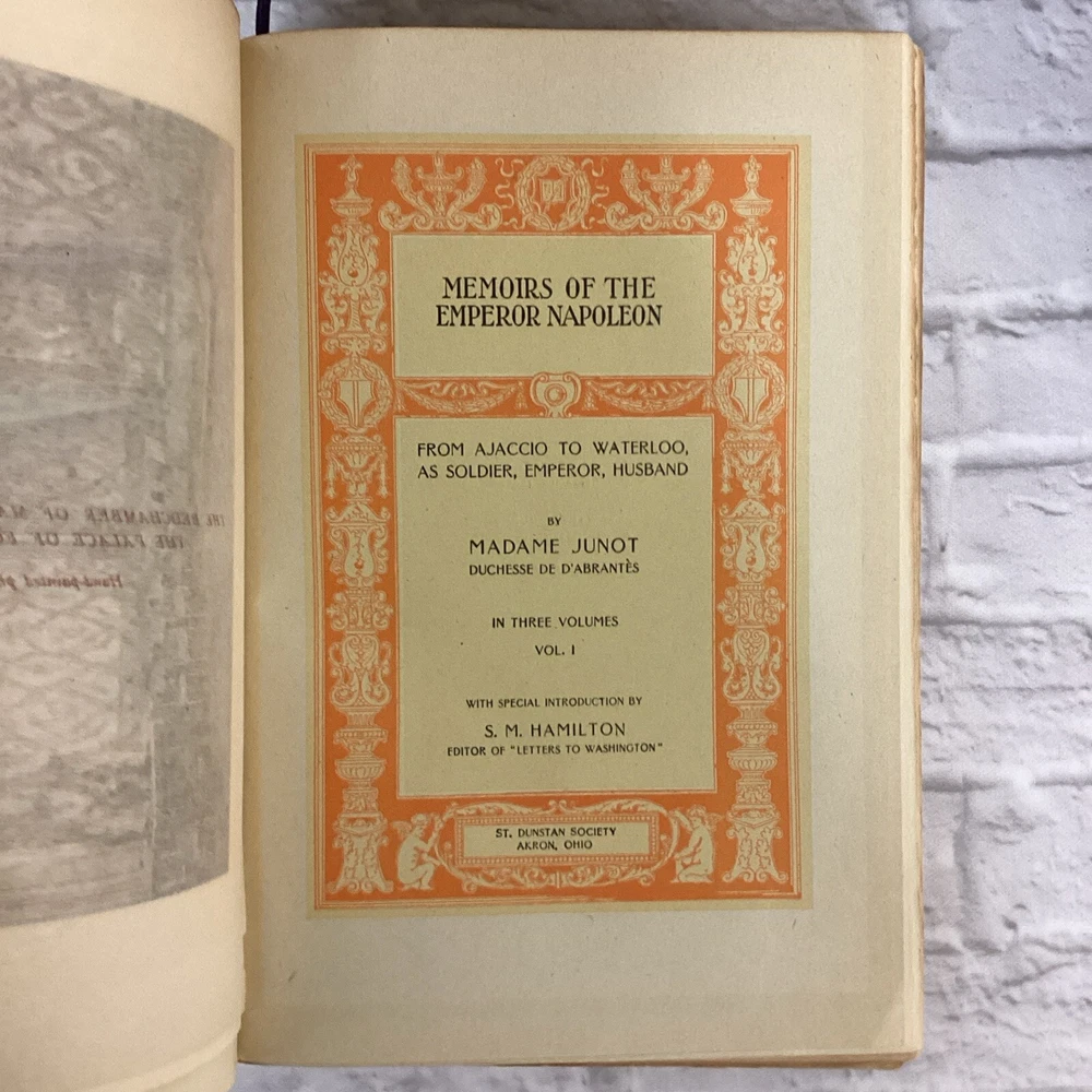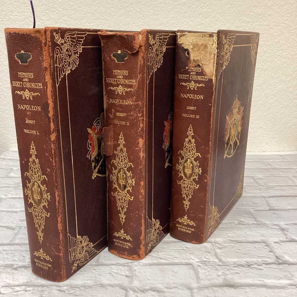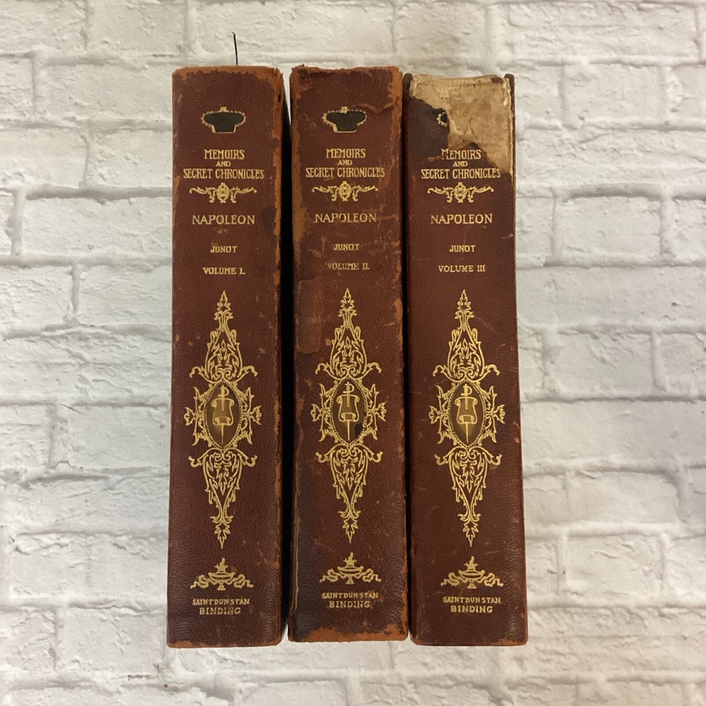 This set of three volumes, titled "Memoirs of the Emperor Napoleon" by Madame Junot, is a rare find for any history enthusiast. The books are bound in leather and were printed in 1901 by the St. Dunstan Society. The author, Madame Junot, provides a unique perspective on the life and reign of Napoleon, making these books a valuable addition to any collection. The books are written in English and are in good condition. All three have significant wear on spine including large chips on Vols 2 and 3. Pages are clean and unmarked, hinges intact.