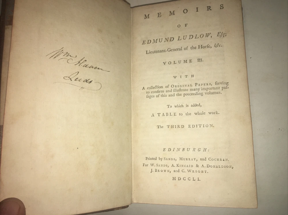 If you are using the Ebay APP and do not see the "Condition Description", please go to the "About this Item" section and hit the arrow to the right. This will lead you to the "Condition Description". Thank you! Memoirs of Edmund Ludlow, Esq. Lt.-General of the Horse, etc. Volume 2 & 3. Wikipedia: Edmund Ludlow (c. 1617–1692) was an English parliamentarian, best known for his involvement in the execution of Charles I, and for his Memoirs, which were published posthumously in a rewritten form and which have become a major source for historians of the Wars of the Three Kingdoms. Ludlow was elected a Member of the Long Parliament and served in the Parliamentary armies during the English Civil Wars. After the establishment of the Commonwealth in 1649 he was made second-in-command of Parliament's forces in Ireland, before breaking with Oliver Cromwell over the establishment of the Protectorate. After the Restoration Ludlow went into exile in Switzerland, where he spent much of the rest of his life. Ludlow himself spelled his name Ludlowe.[1] I strive to describe the item accurately, and provide photos to help convey the condition. If you purchase the item and it is not what you expected, please let me know and I will do my best to resolve the issue. Thanks for your interest in this item! sell inv # 3d