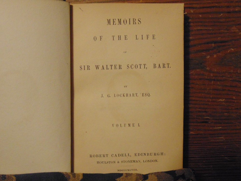 Memoirs of the Life of Sir Walter Scott J. G. Lockhart Published by Robert Cadell; Houlston & Stoneman, Edinburgh; London, 1848 A complete set of the biography of Sir Walter Scott, written by J. G. Lockhart, with frontispieces and a title vignette page to each volume. Bound in half-morocco on marbled boards.?Illustrated bookplate for Herbert Fitzroy Eaton to front pastedown of each volume.Illustrations include a frontispiece and a facsimile title page from the first editions to each volume. Vol. VI has a folding plate containing the facsimile of a page from the original script of Ivanhoe. This work describes the life and legacy of Sir Walter Scott, with details of his experiences alongside letters that he wrote himself. It was originally published in seven volumes between 1837 and 1838.?John Gibson Lockhart (1794-1854) was a Scottish writer and editor who is best known for his biography about Sir Walter Scott.?Collated, complete. Bound in half-crushed morocco with marbled boards. Externally, generally smart, with some marks to boards and a bit of edge wear to extremities. Bibliographic Details Title: Memoirs of the Life of Sir Walter Scott Publisher: Robert Cadell; Houlston & Stoneman, Edinburgh; London Publication Date: 1848 Binding: Leather 3/4 Illustrator: Various Condition: Very Good + Book Type: book FREE US Shipping! Happy Bidding!!