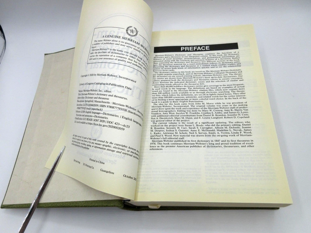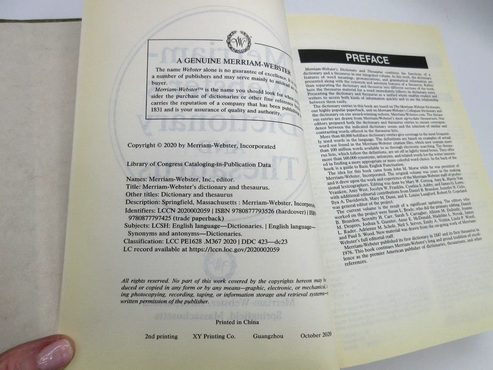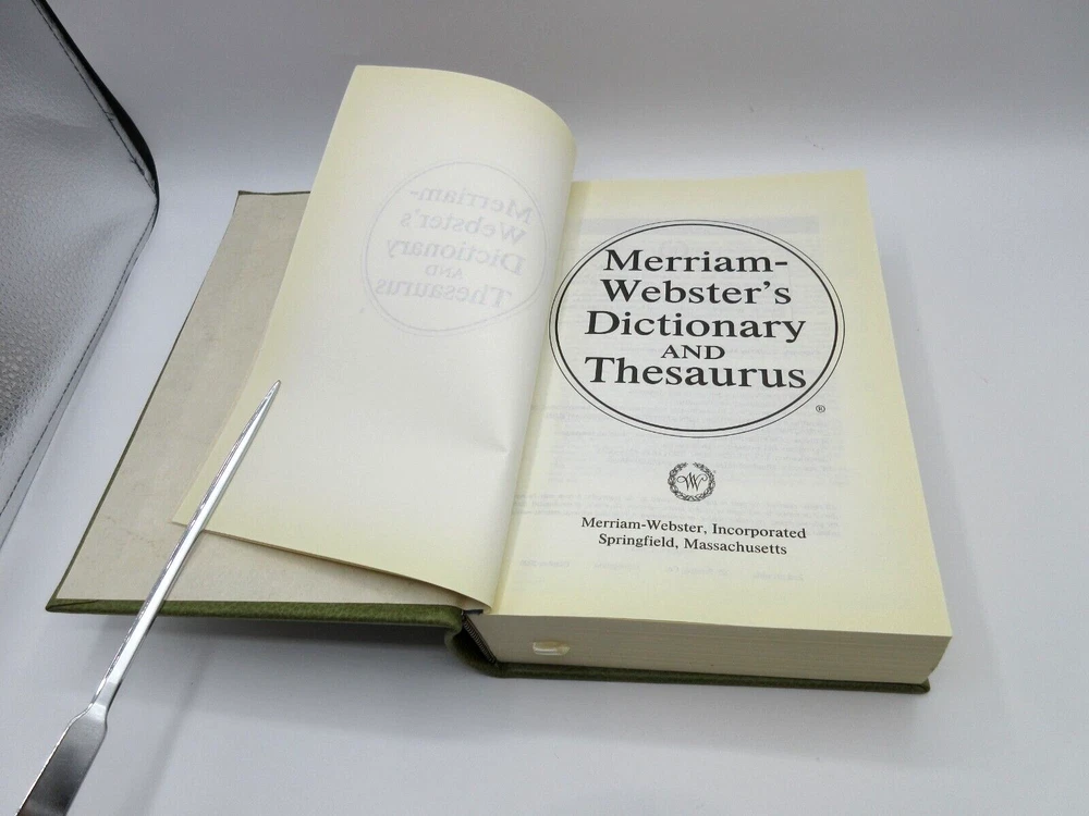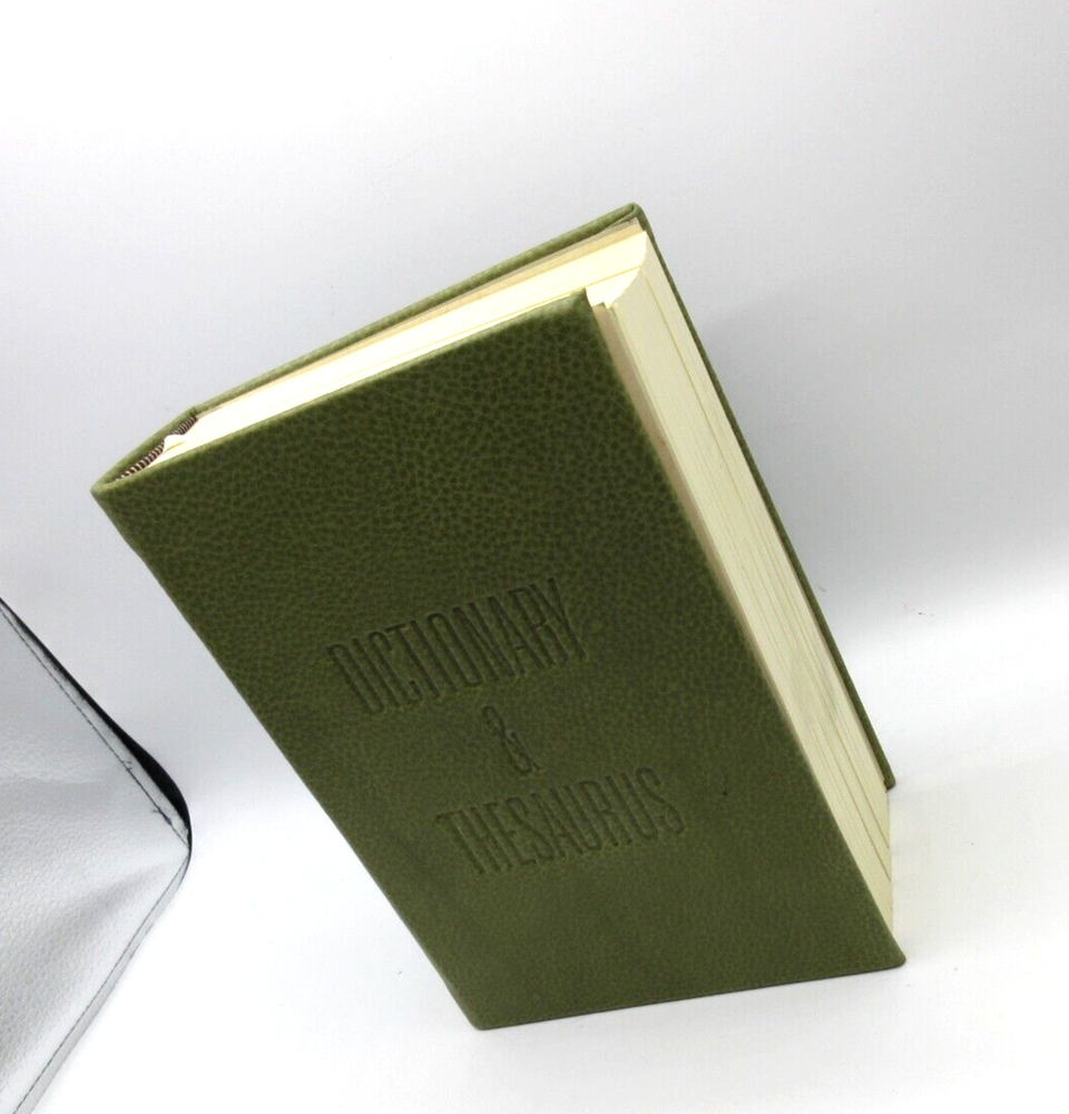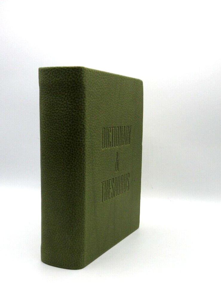 Bonded leather bound hardcover Pages are yellowed around the edges. Handcrafted by Graphic Image in NY Retails for $124 when perfect Revised and Updated Edition! Two essential language references integrated into one handy volume. More than 60,000 dictionary entries with hundreds of new words and senses added across a variety of fields. More than 13,500 thesaurus entries including extensive synonym and antonym lists. Dictionary and thesaurus entries are combined alphabetically. Features clear and concise word guidance including abundant usage examples to clarify meanings. Newly added words include: airplane mode, bucket list, dystopia, parkour , and truther. Based on the best-selling Merriam-Webster's Collegiate(R) Dictionary.