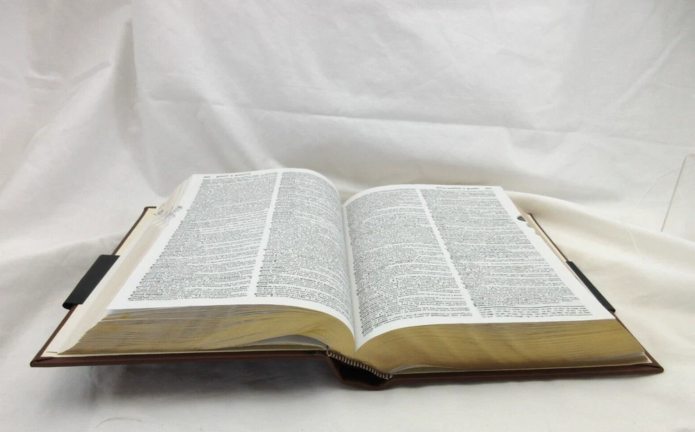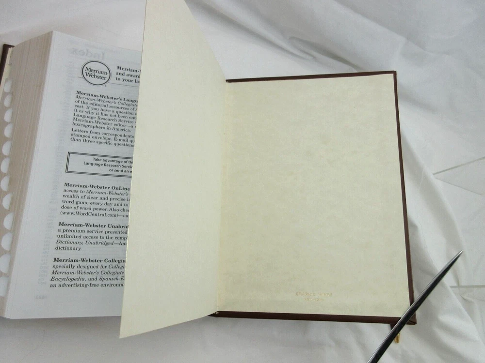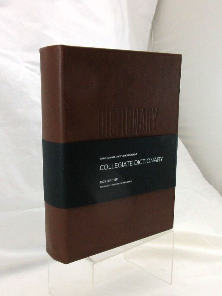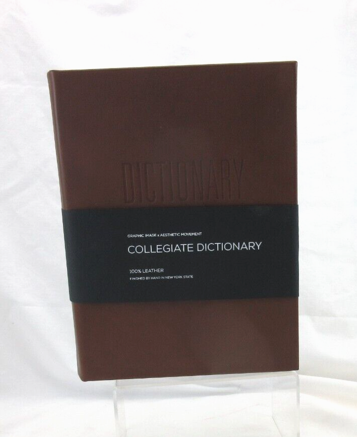 New Merriam-Webster's Collegiate Dictionary Eleventh Edition Smooth full-grain Leather Bound hardcover Handcrafted by Graphic Image in NY Blind embossed lettering on cover Measures : 6.5" W x 9.25" H...