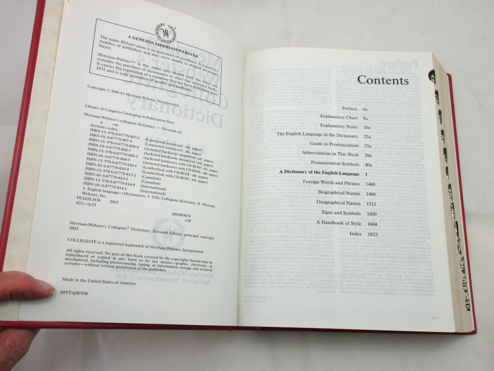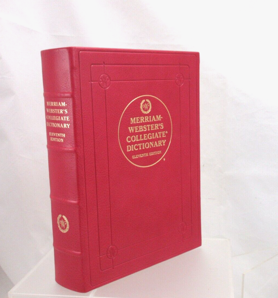 New Merriam-Webster's Collegiate Dictionary Eleventh Edition Pebbled full-grain leather bound hardcover has gold embossed lettering Handcrafted by Graphic Image in NY Measures : 6.5" W x 9.25" H If you’re buying multiple items from us, we are happy to ship everything to you in the same package. Simply add the items you want to buy to your cart and select “request an invoice” and we will adjust the shipping cost.