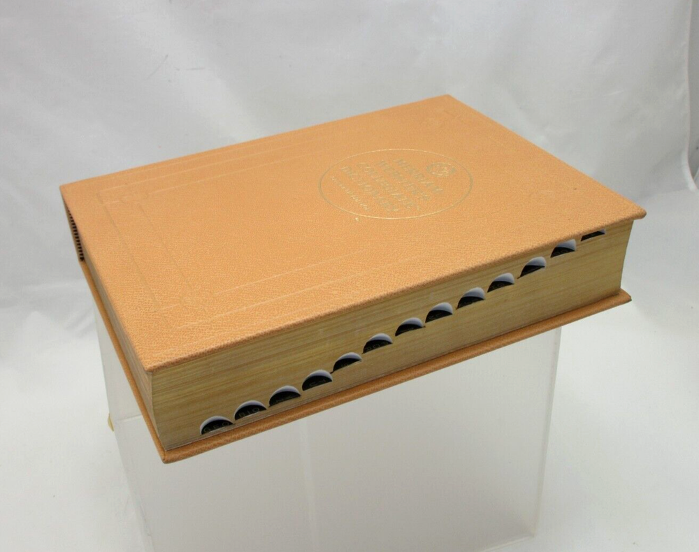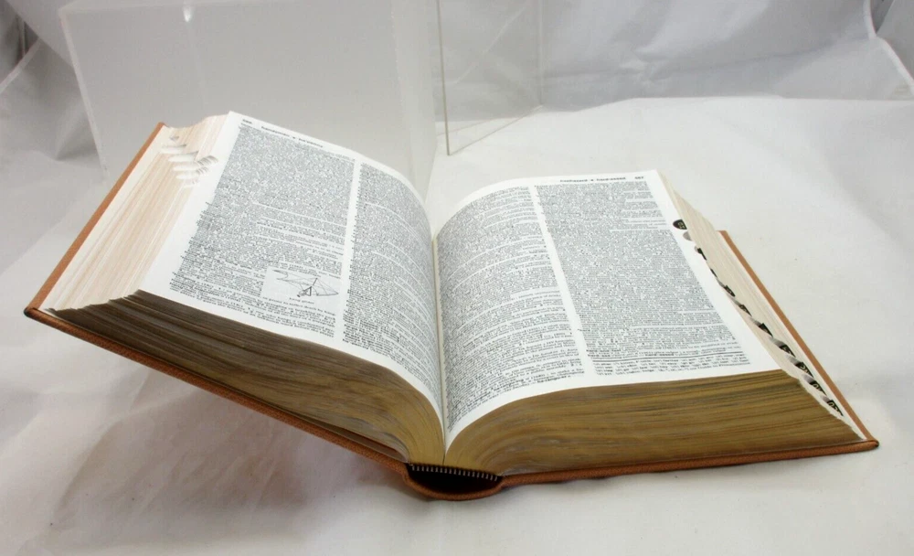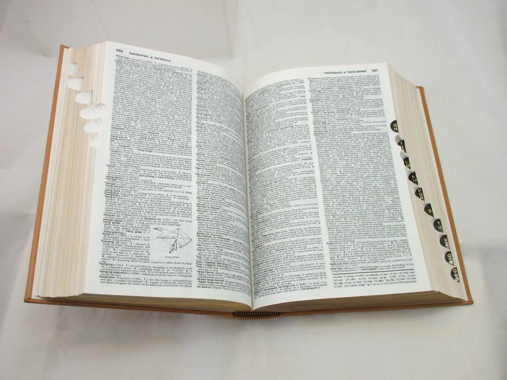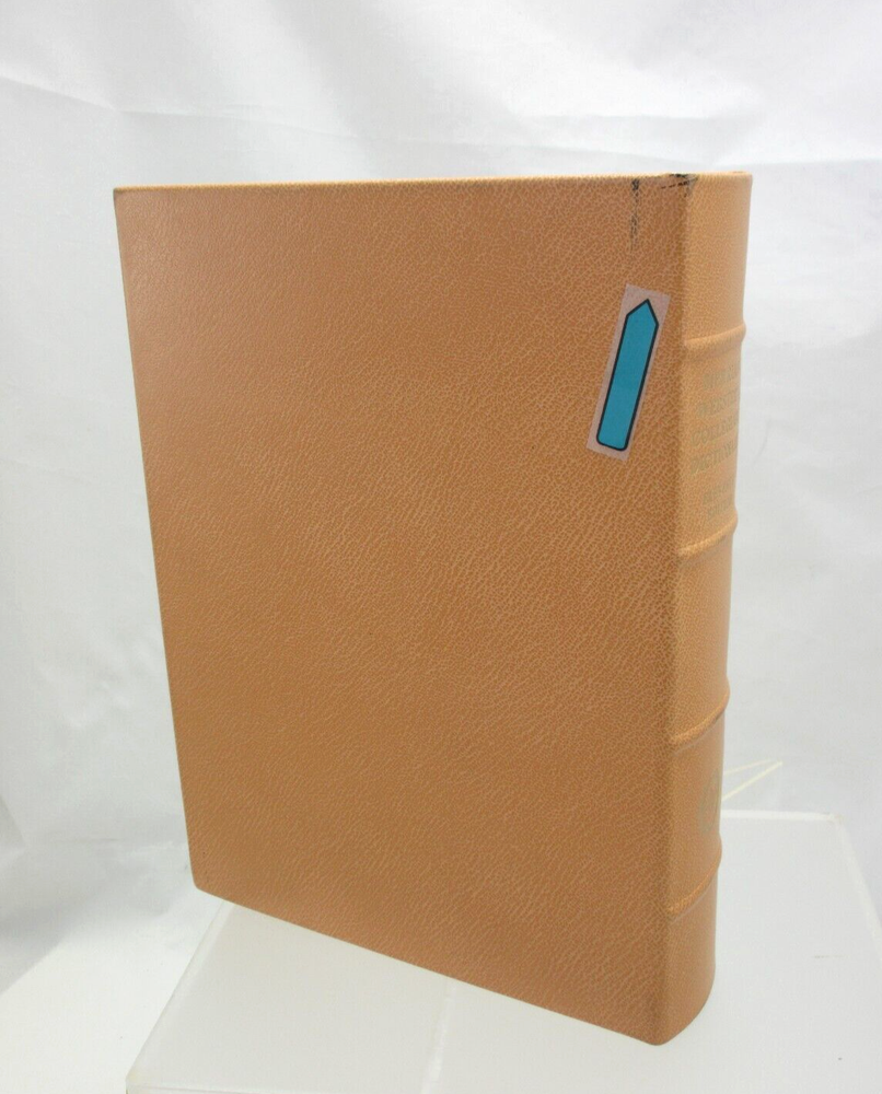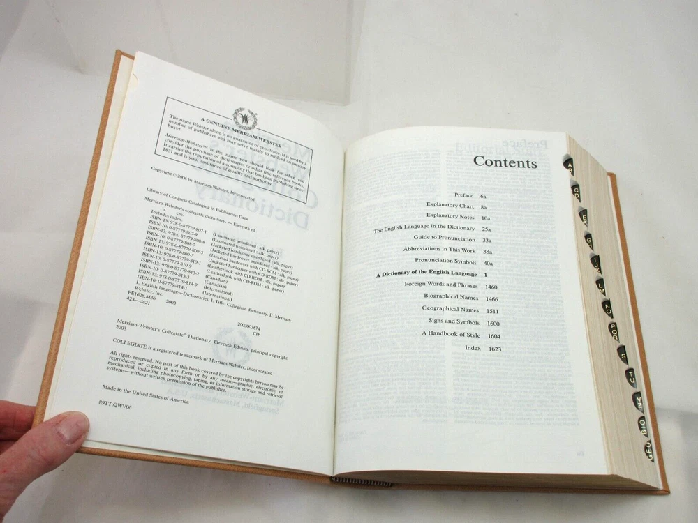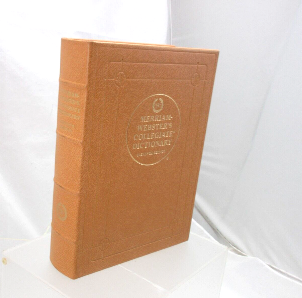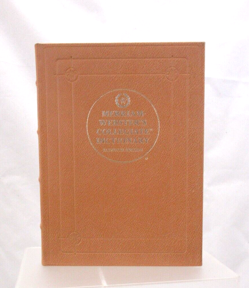 New Merriam-Webster's Collegiate Dictionary Eleventh Edition Full-grain Leather Bound hardcover with gold embossed lettering Handcrafted by Graphic Image in NY Measures : 6.5" W x 9.25" H A new edition of America's best-selling dictionary! A red Kivar bound, plain-edged version featuring more than 225,000 clear and precise definitions, 700 illustrations, and more than 10,000 new words and meanings. Special sections include a Handbook of Style.