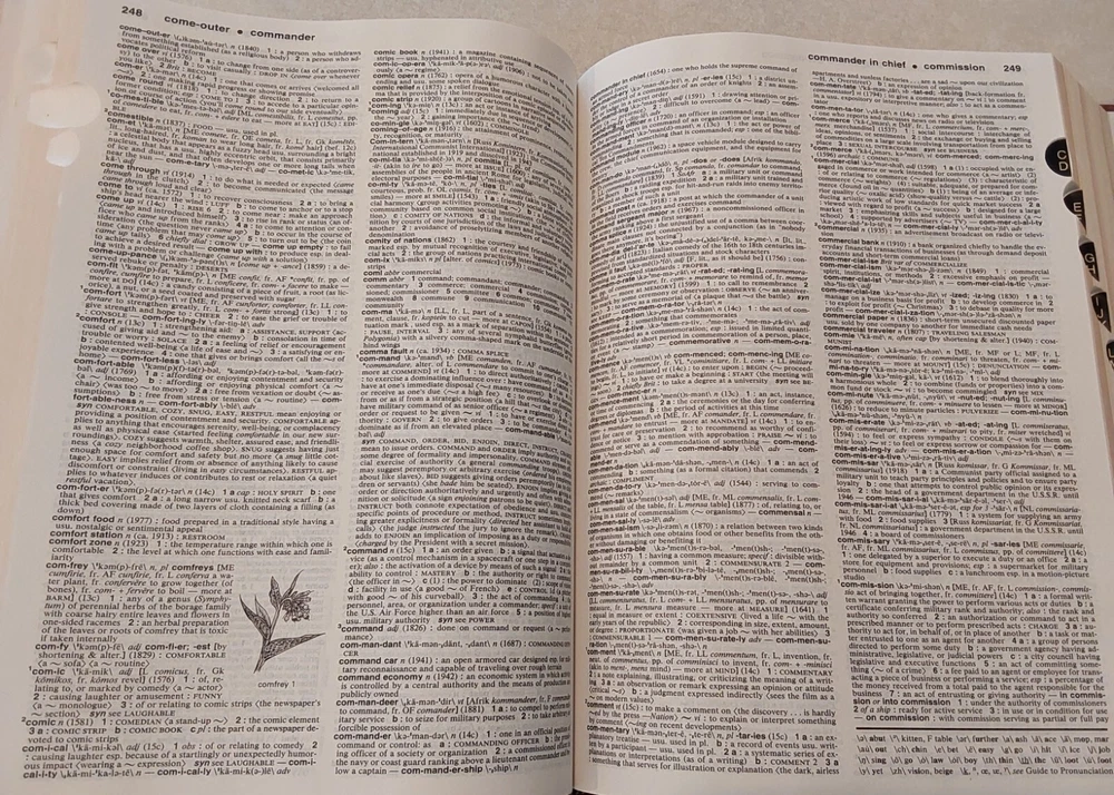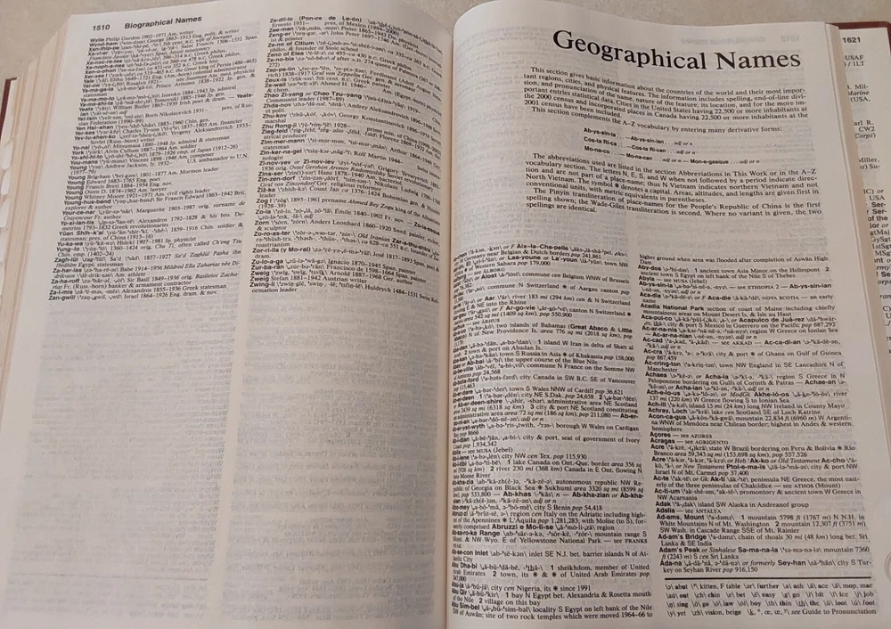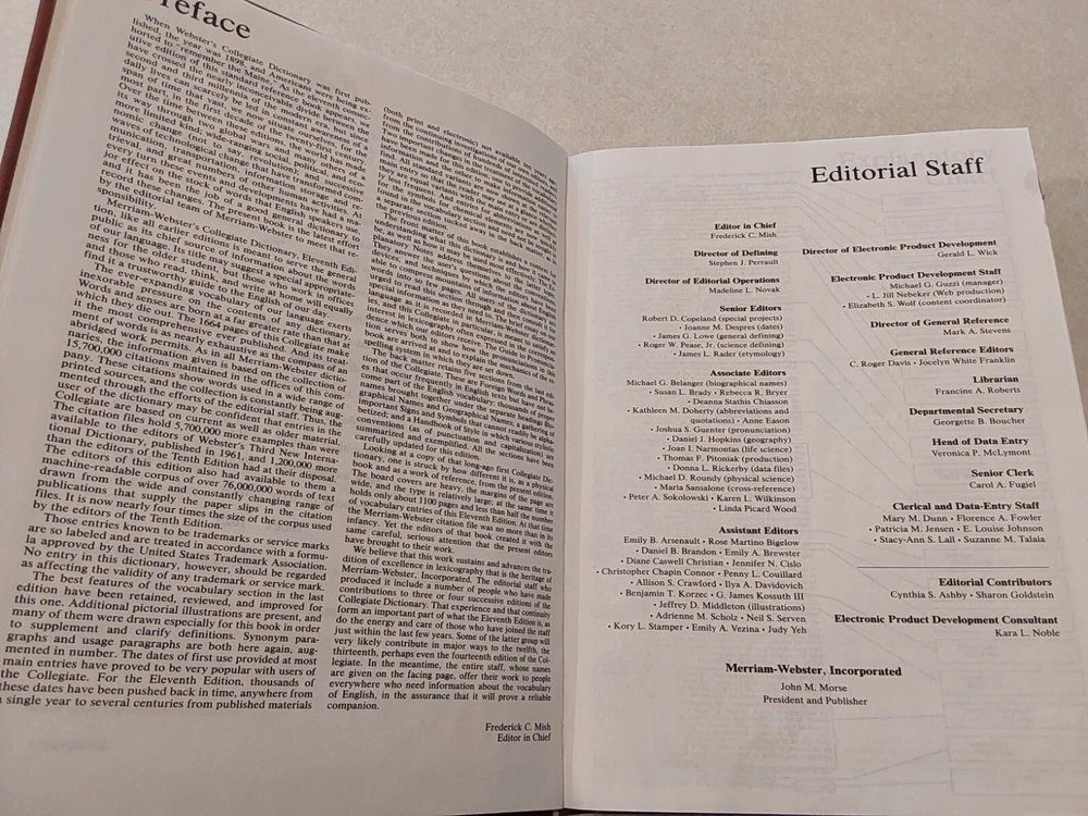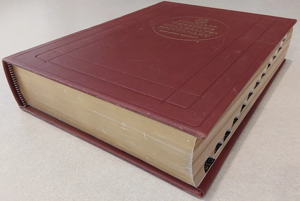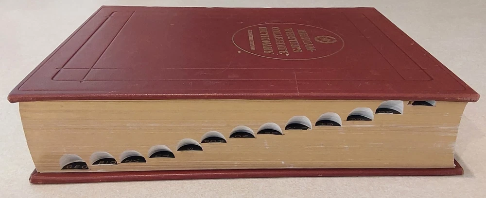 Merriam-Webster’s Collegiate Dictionary , Eleventh Edition. Springfield, MA: Merriam-Webster, 2005. Brown leather-like hardcover, with gilt lettering on cover and spine, 4 raised bands on spine, gilt-edged text blocks, Table of Contents, Index, 1622 pages. Measures about 7 ¼” x 9 ¾.” Weighs almost four pounds. Covers have some scuff wear, as seen in photos. No writing, marks, or tears to pages; has some light creases. Note that I have described the book as best as I can. Look at all photos closely for condition and details as they are also part of the description. Email with any questions.