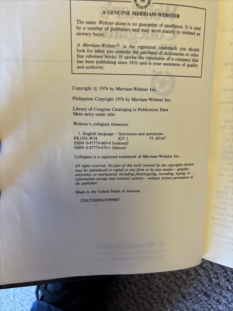 This Merriam-Webster's Collegiate Thesaurus is a must-have for any English language enthusiast. With its leather-bound hardcover format, it is a durable and stylish addition to any book collection. The thesaurus features a comprehensive list of words and definitions, covering all levels of beginner, advanced, and intermediate learners. Published in 1976 by Merriam-Webster, this thesaurus is a part of the Webster's New World series. It is written in English and is perfect for general knowledge. The publication name, MERRIAM-WEBSTER, is a trusted source for all language-related queries. This thesaurus is a great reference tool for anyone looking to expand their vocabulary.
