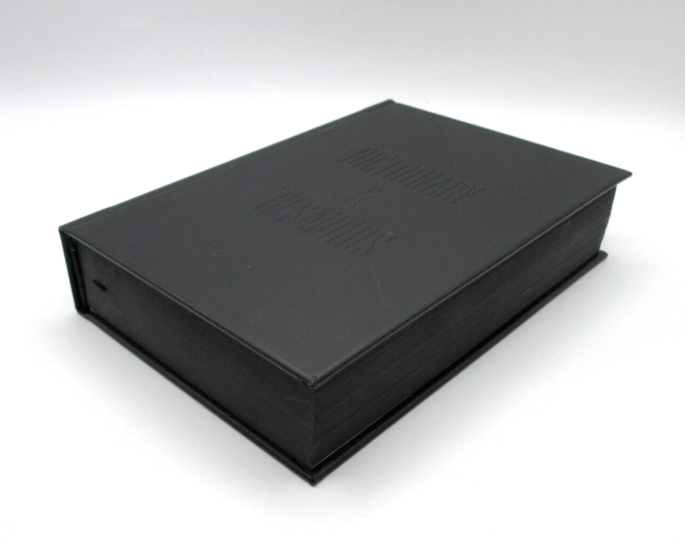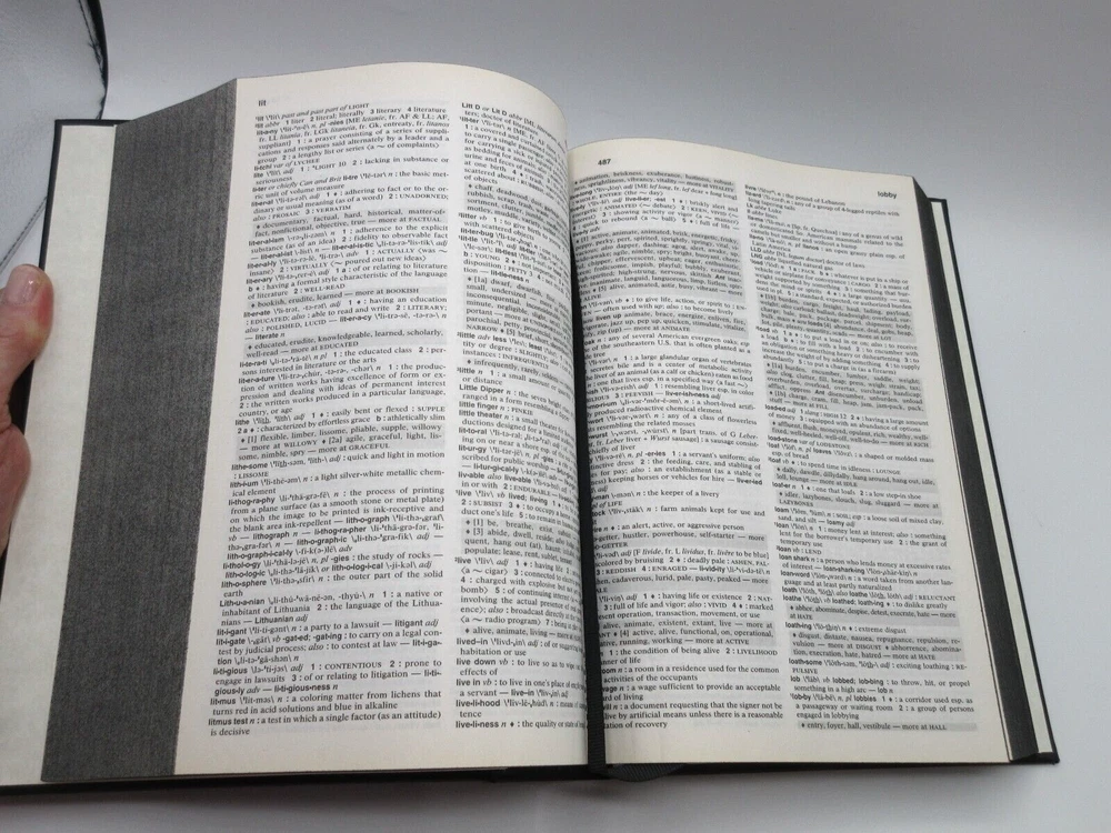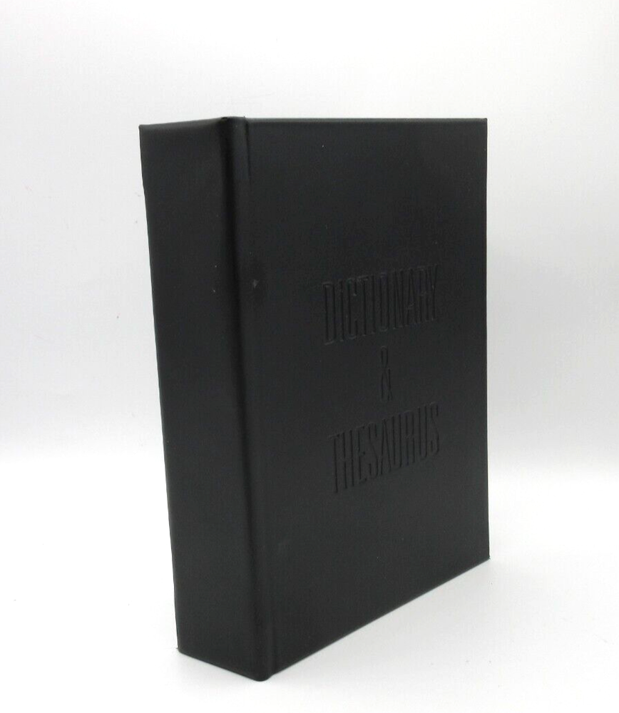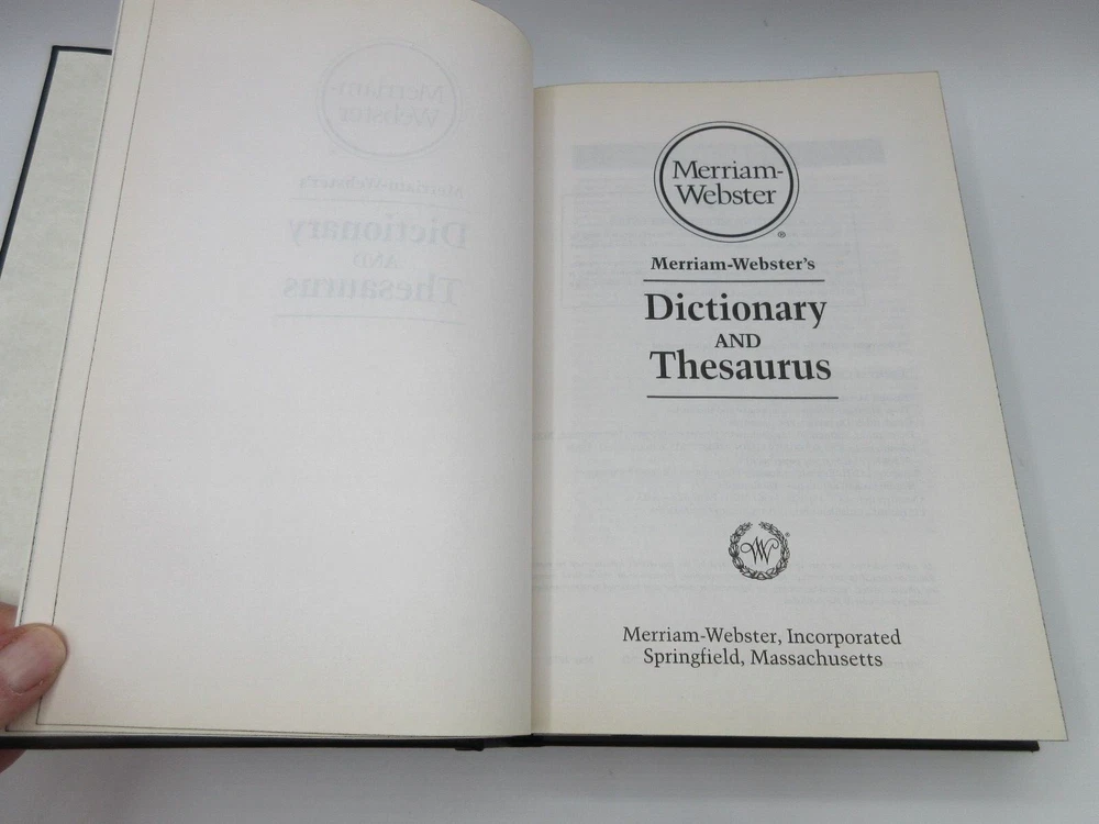 Bonded Vachetta leather bound hardcover has a few blemishes Pages have a bit of fading around edges Leather cover was handcrafted by Graphic Image in NY Retails for $124 when perfect Revised and Updated Edition! Two essential language references integrated into one handy volume. More than 60,000 dictionary entries with hundreds of new words and senses added across a variety of fields. More than 13,500 thesaurus entries including extensive synonym and antonym lists. Dictionary and thesaurus entries are combined alphabetically. Features clear and concise word guidance including abundant usage examples to clarify meanings. Newly added words include: airplane mode, bucket list, dystopia, parkour , and truther. Based on the best-selling Merriam-Webster's Collegiate(R) Dictionary.