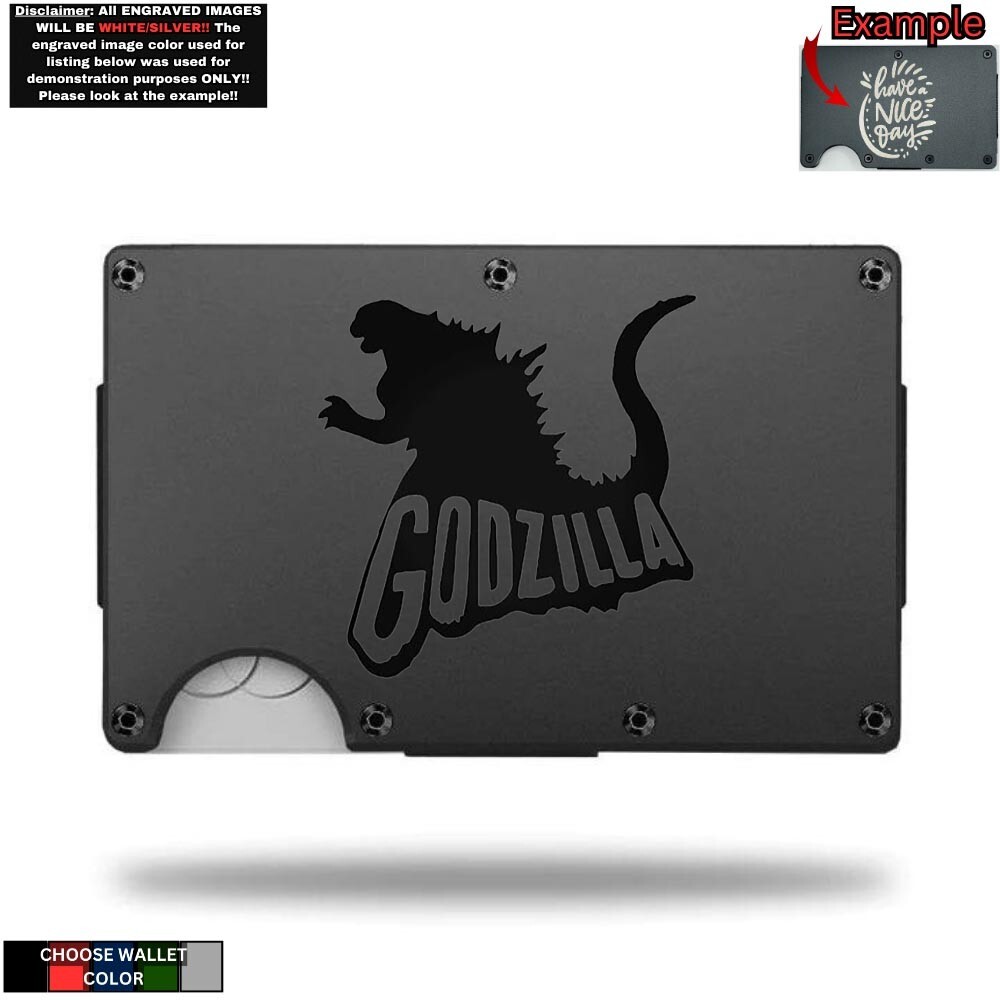 Crafted for the enthusiast of classic monsters, this minimalist metal wallet boasts a sleek design, secured with a slim clip for a smooth experience. The wallet is meticulously laser-engraved with the iconic Godzilla pattern, adding a touch of personalization to your accessory. Functionality meets style with this RFID-blocking wallet that not only protects your credit cards from unauthorized scanning but also serves as a statement piece. The durable aluminum construction ensures longevity, while the option to personalize offers a unique touch. Handcrafted in the United States, this wallet is a testament to quality and individuality.