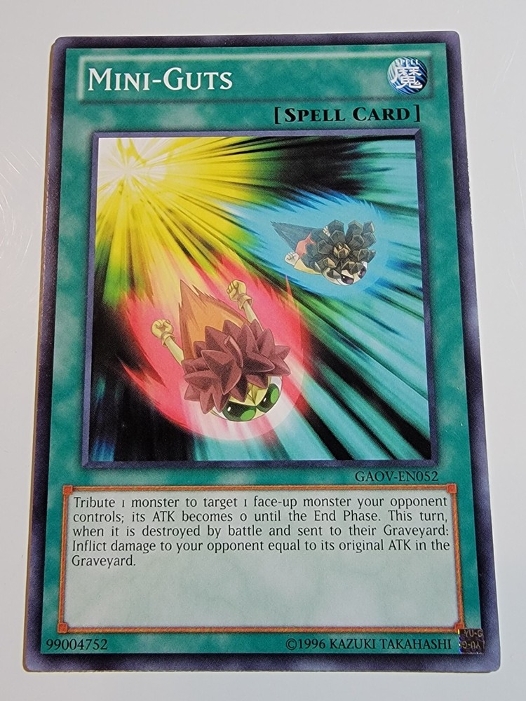 Mini-Guts GAOV-EN052 Common Unlimited Yugioh. Overall NM-M condition. (Please reference pictures for c osmetic condition). Take advantage of our multi item discount!!! When you buy 2 items you will have the opportunity to select a 3rd item of equal our lesser value for free from our whole inventory. (Must use Ebay's shopping cart feature in order to take advantage of this discount). If you have any inquiries please feel free to message us and we will respond as soon possible, usually within 24 hours. SHIPPING We almost always use USPS as our primary SHIPPING service. We ship within 24 hours of receipt of payment and will always provide tracking, unless otherwise stated in the listing. (We reserve the right to use a different carrier or service). FEEDBACK Your FEEDBACK is important to us as a growing small business. If for any reason you are unhappy with your transaction, please message us and we will do everything in our power to make it right. Returns Returns are accepted within 30 days of confirmation of delivery. If there is anything you are unhappy about with your purchase please message us and we will respond within 24 hours to your concerns. Thank you for supporting our small business. We appreciate your valued business with us and look forward to serving you in the future. Dan & Tonya Dio's Eclectic Treasures