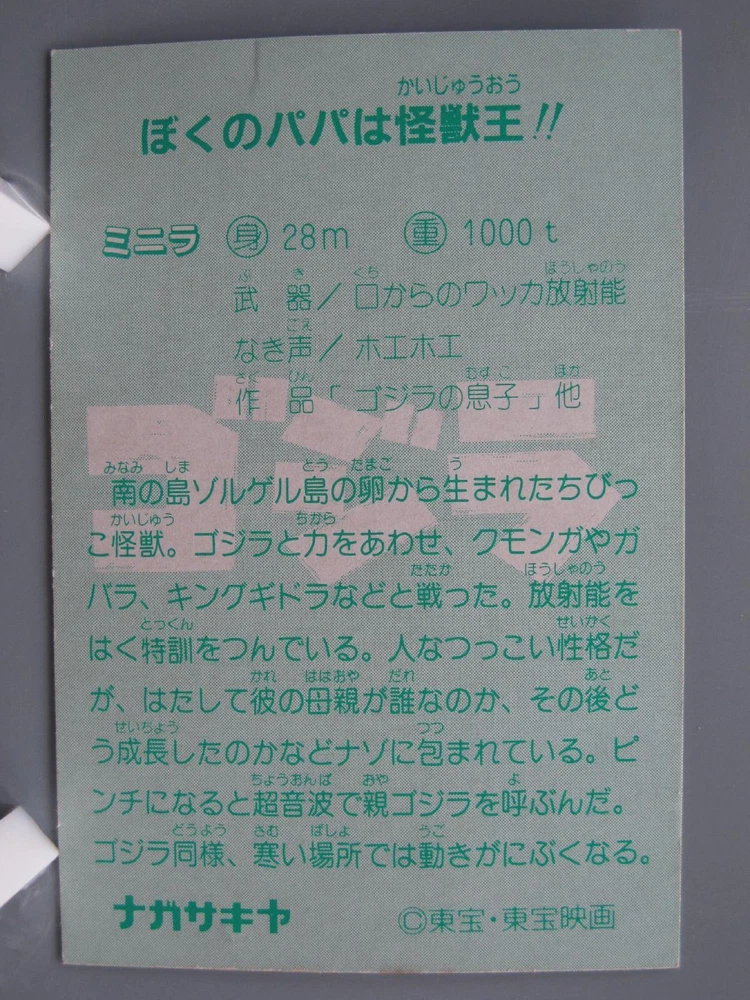 Minilla Godzilla Japanese Anime TCG Card 7.1x4.8cm F/S No.1
