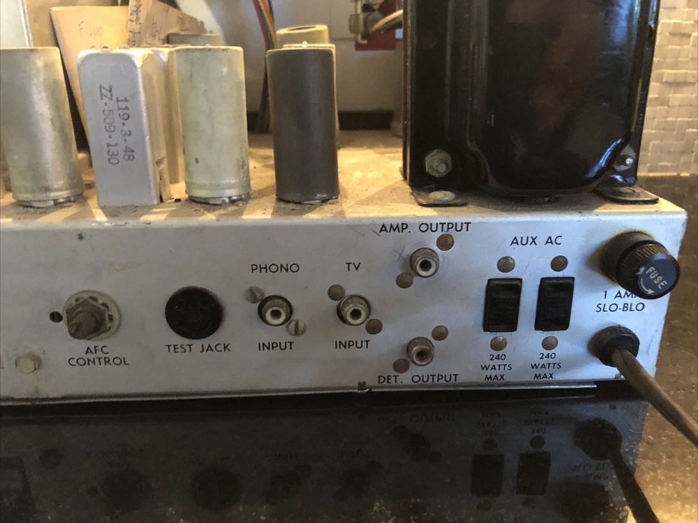 Specifications Type: Mono Tuner Tuning Bands: FM, MW Tuning Scale: Analogue FM Tuning Range: 88 to 108 MHz MW Tuning Range: 540 to 1620 kHz Valve complement: 2 x 6BQ7A, 2 x 6AU6, 3 x 6BA6, 1 x 6CB6, 1 x 6BE6, 1 x 12AU7, 1 x 12AX7 Year: 1954 Perfect Working Condition.