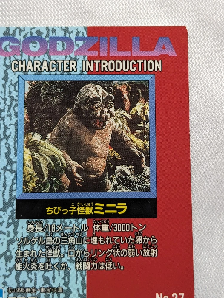 Minya Minilla Godzilla Amada 1995 Toho No.27 Vintage Japanese Retro Collectible Card