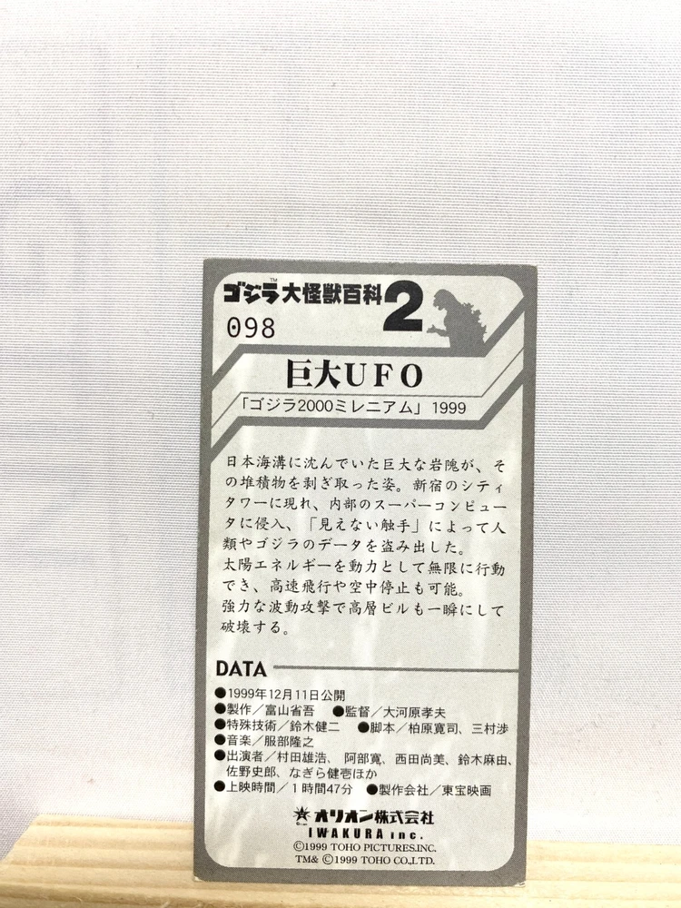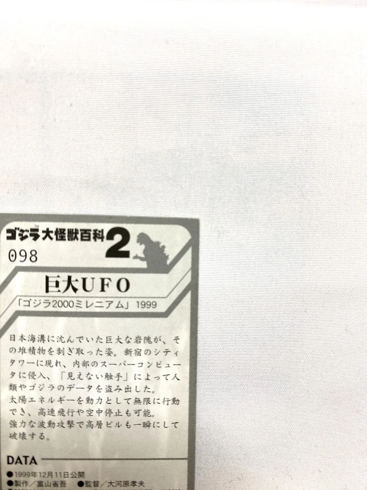 You can get a discount if you buy the products in bulk Please select multiple items you would like to purchase and send us a message. I would be happy if I could make a good deal with you. Send us the URL of the product you want. If you don't know, send us the product number. "a-ri-ga-to-u" I live in Tokyo, Japan. I sell Japanese original goods and character goods. Please feel free to say "Hi" if you find the item that you want. Description [Title] Mirenian UFO Godzilla Japanese Monster Encyclopedia 2 Mini Card TOHO No.098 [Condition] Used."" Please judge with photos."" Shipping Economy Shipping [ No Tracking number , Japan Post Airmail] : Cost Free, About 2-3 weeks to arrive --Shipping-- Shipping from Japan Ship to Worldwide Airmail (No insurance & No tracking number, about 7-14 days to USA.) tracking number +4$ (Insurance & Tacking number, about 7-14 days to USA.) EMS +30$ (insurance &tracking number 3-7 days to USA.) International Buyers - Please Note: Import duties, taxes and charges are not included in the item price or shipping charges. These charges are the buyer's responsibility. Please check with your country's customs office to determine what these additional costs will be prior to bidding/buying. These charges are normally collected by the delivering freight (shipping) company or when you pick the item up - do not confuse them for additional shipping charges. We do not mark merchandise values below value or mark items as gifts - US and International government regulations prohibit such behavior.
