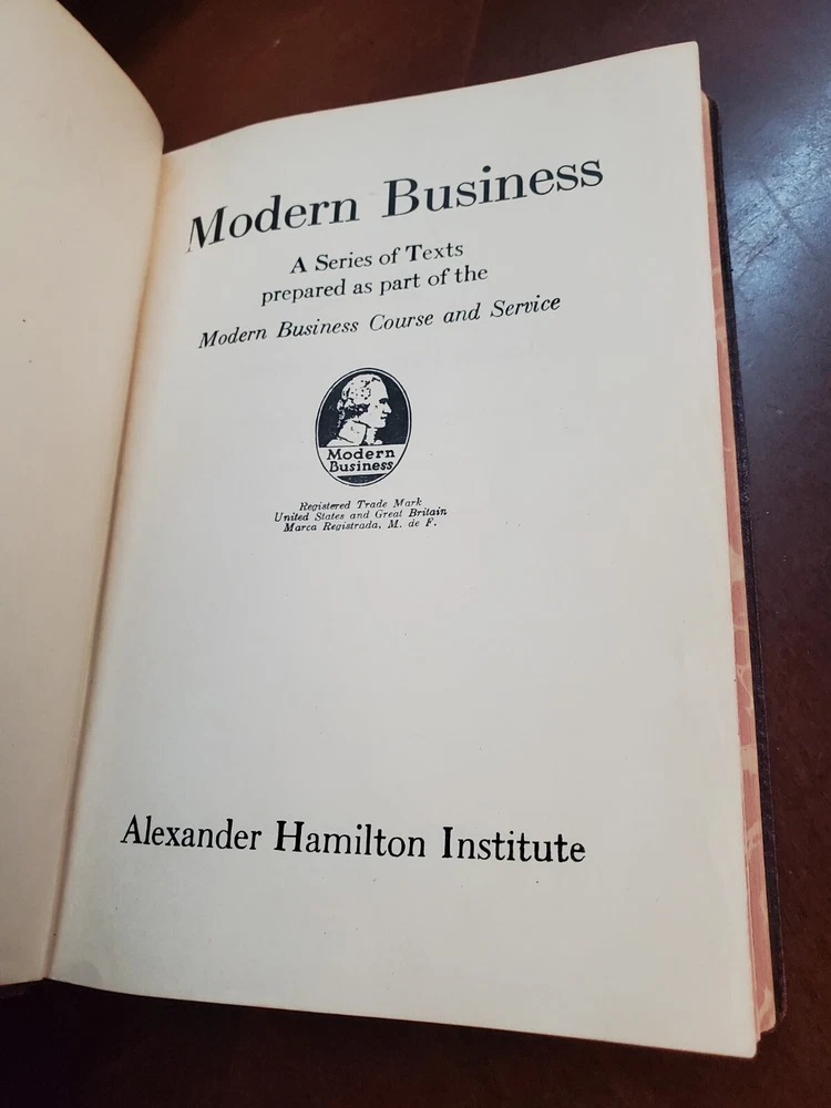 Modern Business Hamilton Institute Marketing Geography 1930. Book is in good condition overall, with minimal wear, edge wear. Title pages have small tears at the bottom as shown. Please see photos for further review and feel free to ask any questions.