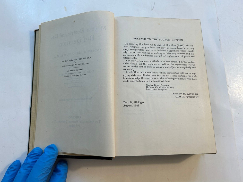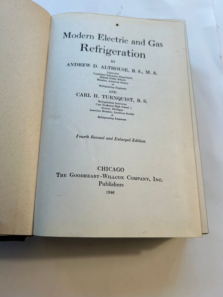 This vintage book is a gem for anyone interested in refrigeration history! The leather-bound 1946 edition by Althouse & Turnquist offers fascinating insights into early electric and gas refrigeration systems. The content is surprisingly relevant, blending retro charm with practical knowledge. The craftsmanship is outstanding—the leather cover has aged beautifully, giving it a classic, timeless feel. A must-have for collectors and refrigeration enthusiasts alike!