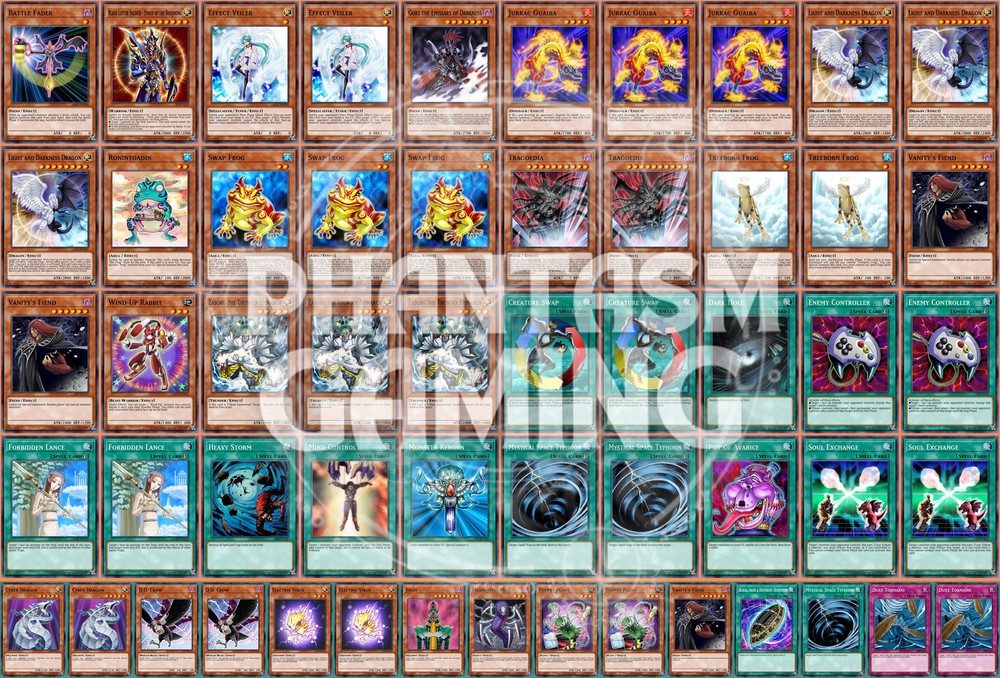 Deck Name: Monarchs (B) (Dino Rabbit) # Main Deck (40) 1 - Battle Fader 1 - Black Luster Soldier - Envoy of the Beginning 2 - Effect Veiler 1 - Gorz the Emissary of Darkness 3 - Jurrac Guaiba 3 - Light and Darkness Dragon 1 - Ronintoadin 3 - Swap Frog 2 - Tragoedia 2 - Treeborn Frog 2 - Vanity's Fiend 1 - Wind-Up Rabbit 3 - Zaborg the Thunder Monarch 2 - Creature Swap 1 - Dark Hole 2 - Enemy Controller 2 - Forbidden Lance 1 - Heavy Storm 1 - Mind Control 1 - Monster Reborn 2 - Mystical Space Typhoon 1 - Pot of Avarice 2 - Soul Exchange # Side Deck (15) 2 - Cyber Dragon 2 - D.D. Crow 2 - Electric Virus 1 - Jinzo 1 - Marionette Mite 2 - Puppet Plant 1 - Vanity's Fiend 1 - Burial from a Different Dimension 1 - Mystical Space Typhoon 2 - Dust Tornado You will receive all of the following cards listed above. Most cards will will be in near mint condition. In the case of certain older cards we will do our best but some cards may be light or even moderatly played in extreme condtions. Those conditions being the card has not been reprinted in a number of years and con no longer be easily purchased in light or near mint condition. Set, Rarity, and Edition will vary and cannot be special requested. These lists are constructed with least expensive rarities we have available in stock. All cards are play legal copies. Note: If purchasing a Yugioh Deck all Speed duel cards are 100% legal at all levels of play. Store Policies Here at PMG_LLC , we pride ourselves on having the best customer service around. If you have any questions or can't seem to find something that you want please do not hesitate to contact us. We will do our best to respond to all questions within one business day. Hours of Operation: Monday-Friday: 2:30pm - 10:00pm Saturday- 10:00am - 8:00pm Sunday 11:00am - 5:30pm Note: We are closed all national holidays. Info: Thank you for choosing PMG_LLC . We appreciate your business. We ship Monday through Friday to make sure you get your deck as quickly as possible. All orders priority orders can use combined shipping. In order to use the combined shipping your whole purchase needs to be checked out as one order. We ship once we have received your payment and payment has cleared. As always if you have any questions or concerns please feel free to contact us via email. Shipping Information: We ship Monday through Friday, barring national holidays during which the United States Postal Service is closed. If you purchase a card on Friday or Saturday please bear in mind it will not ship until Monday. US Shipping: First Class Mail : Free. Comes with tracking information. Priority Mail with Delivery Confirmation : $9.99 All orders are shipped in appropriate protective material inside bubble mailers. International Shipping: We do not offer international Shipping Return Policy: You must return items sold and fulfilled by PMG_LLC within 30 days of delivery to be eligible for a refund. Returns which are damaged in the mail due to improper return packaging will receive partial refunds. We will process a full refund for all items returned in their original condition. In order for us to process your full refund you must include the full name associated with the order as well as the eBay order number inside the return packaging. We will not process returns which do not include the buyer's name and order number. Requirements: Please return items with the original plastic packaging. Failure to do so may result in a partial refund. Also you must inform us of any returns you may wish to process before sending them back. Any items simply send back to us without prior contact will not be eligible for refunds. Important Notes Remember that to benefit from our domestic combined shipping on priority orders you must to pay in a single payment. If you place two separate priority orders you will be charged the $7.50 shipping fee for both orders. If you place multiple orders for Priority shipping you will be charged the corresponding shipping costs for each order, even if you place the orders on the same day. We do not refund shipping costs as we tend to package orders throughout the day and may not notice that you would otherwise have qualified for combined shipping. We want to provide you with 5 Star service and earn your Positive Feedback, so if for any reason you are not happy with your transaction, contact us before leaving feedback. Business Day - Our business day runs from Monday to Friday from 9am to 4pm, excluding US national holidays. Any orders placed or payments cleared less than 4 hours before the close of business will be considered orders from the following business day.