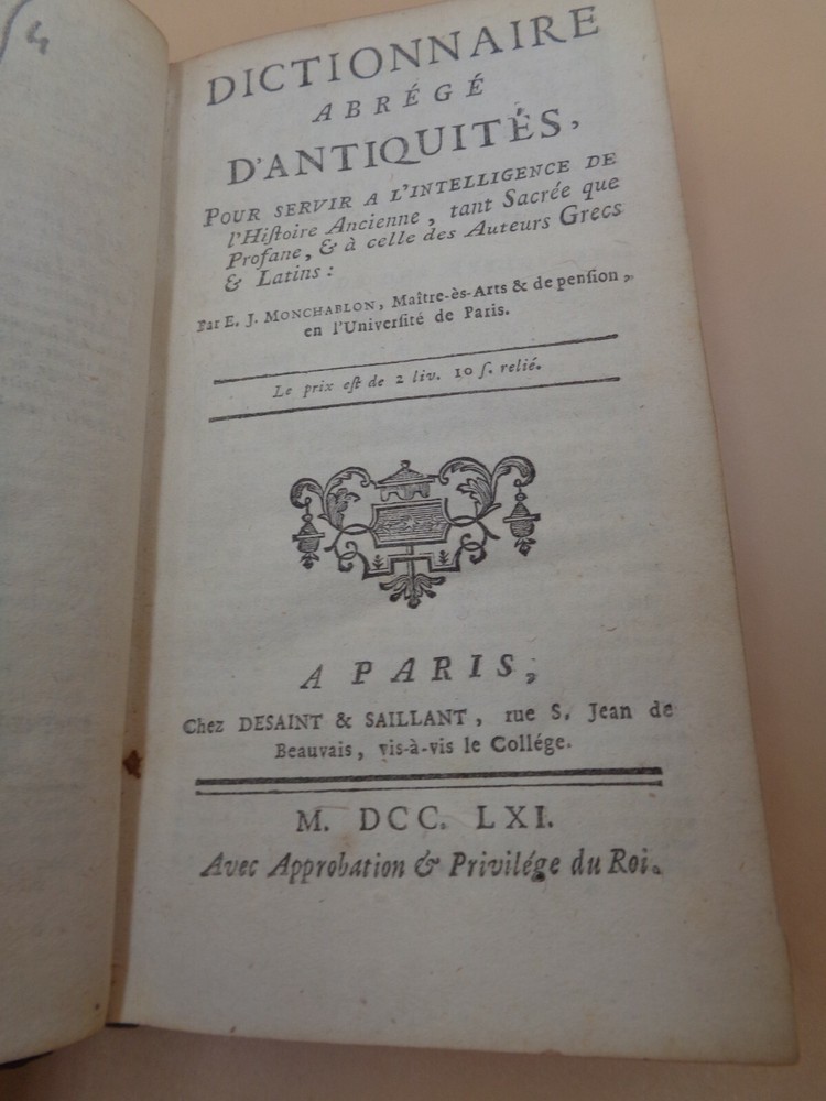 Monchablon Abridged Dictionary of Antiques Paris, at Desaint & Saillant, 1761 Full sheepskin (16x10cm), 352 pages Slightly rubbed binding with 1 partially split jaw 522 Monchablon Abridged Dictionary of Antiques Paris, at Desaint & Saillant, 1761 Full sheepskin (16x10cm), 352 pages Slightly rubbed binding with 1 partially split jaw 522