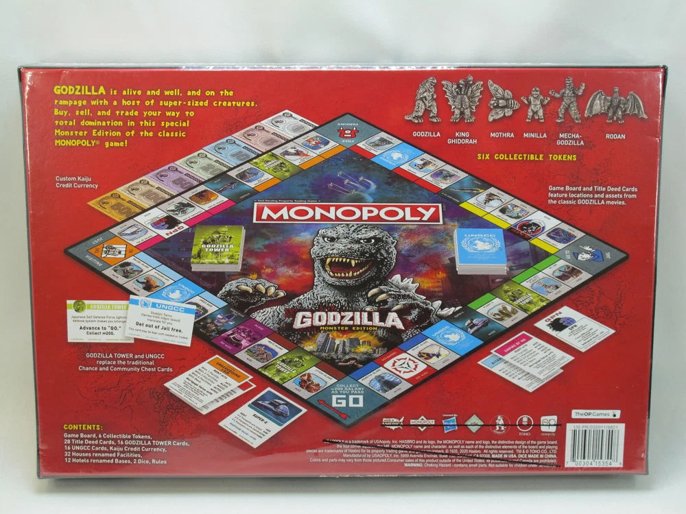 Monopoly Godzilla 2020 Monster Edition Board Game Hasbro New Sealed * Published in 2020 by Hasbro / USAopoly * Ages 8 and Up * 2 to 6 Players * English Text and Instructions The Game is 100% Complete ...
