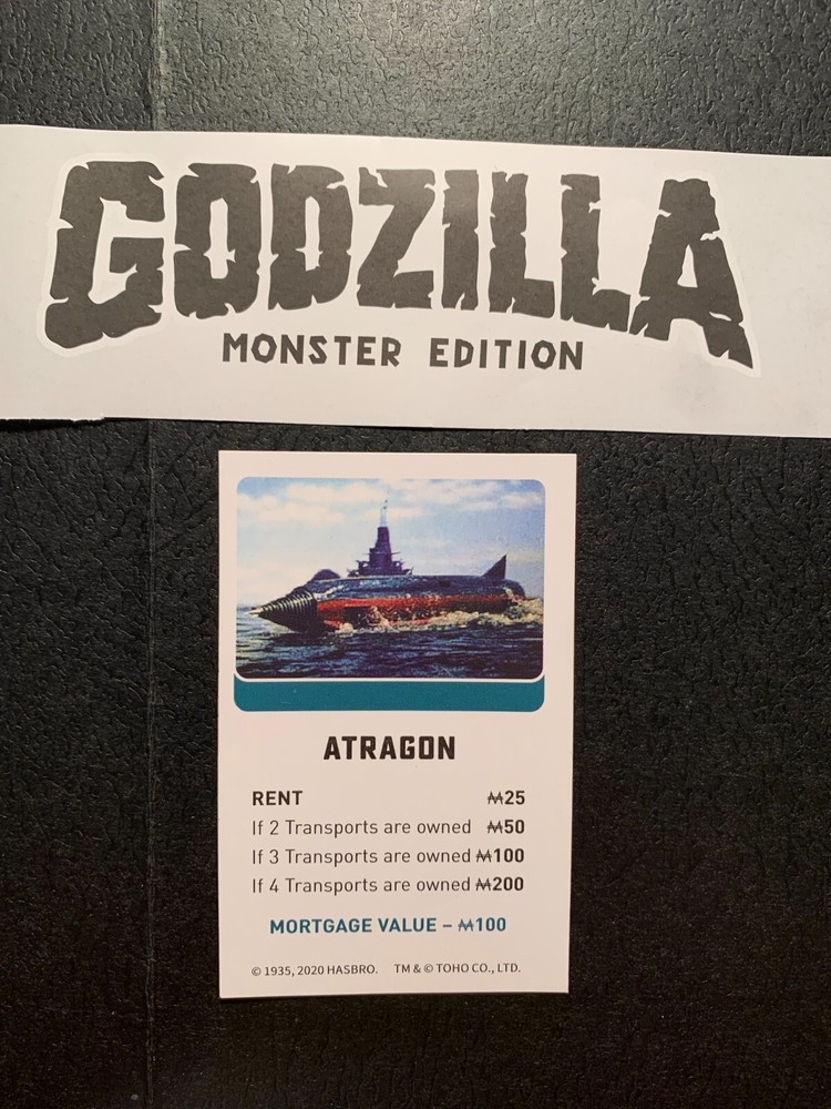 MONOPOLY GODZILLA MONSTER EDITION 2020 .. " ATRAGON " Title Deed Card...