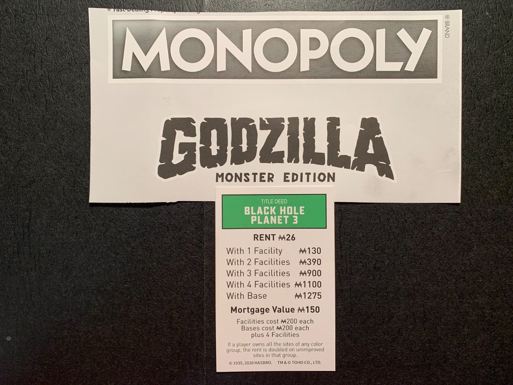 MONOPOLY GODZILLA MONSTER EDITION 2020 .. " BLACK HOLE PLANET 3 " Title Deed Card...