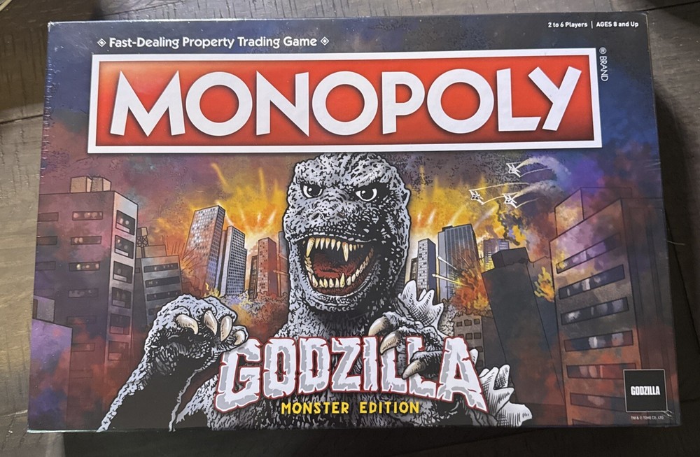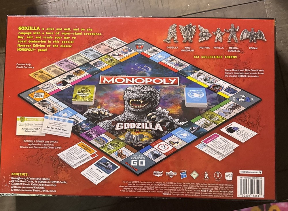Monopoly Godzilla is a board game featuring familiar locations and iconic Kaiju monsters from the Godzilla franchise. With a black color scheme and officially licensed Godzilla theme, players can enjoy this USAopoly game suitable for ages 8 and up. The game board is designed for 2 players or more, providing hours of entertainment for fans of Godzilla and board games alike.