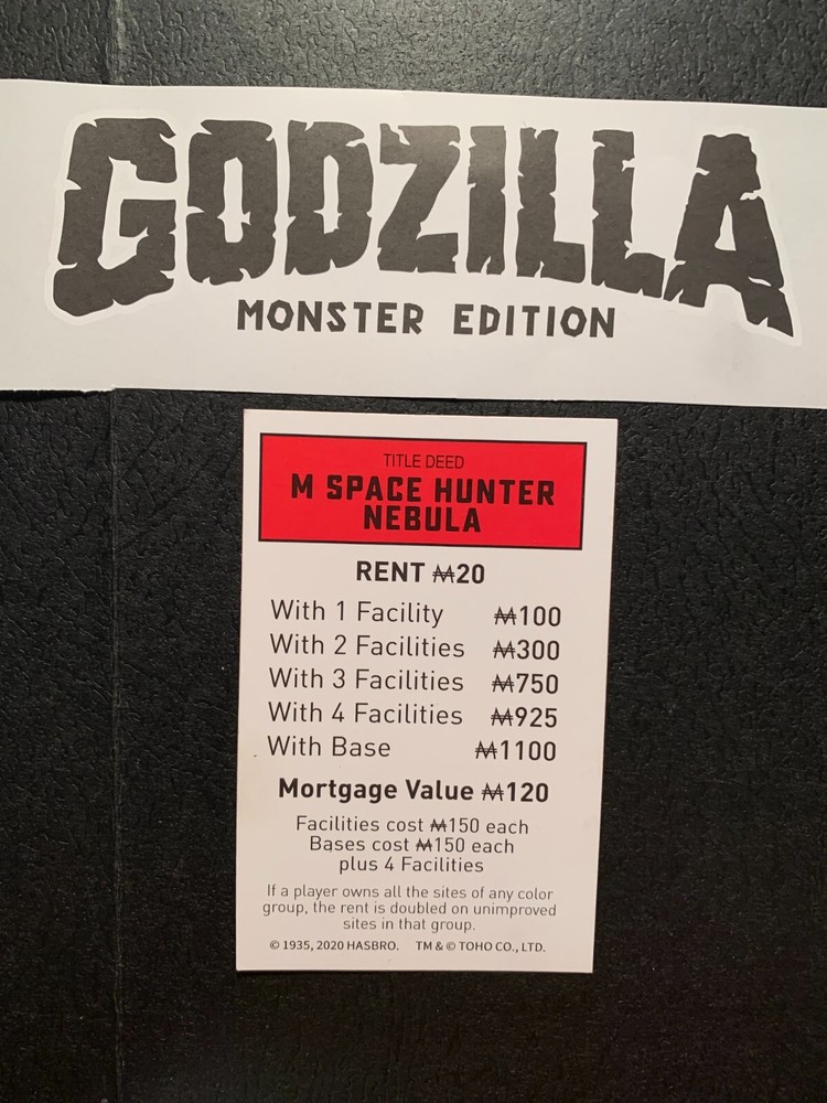 MONOPOLY GODZILLA MONSTER EDITION 2020 .. " M SPACE HUNTER NEBULA " Title Deed Card