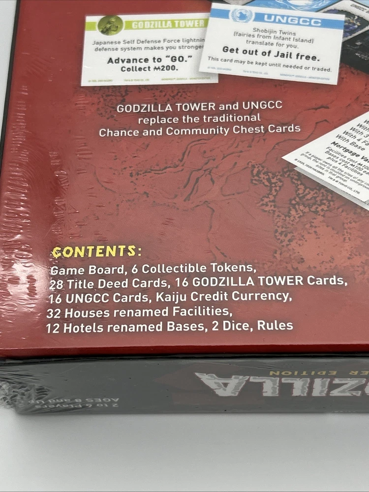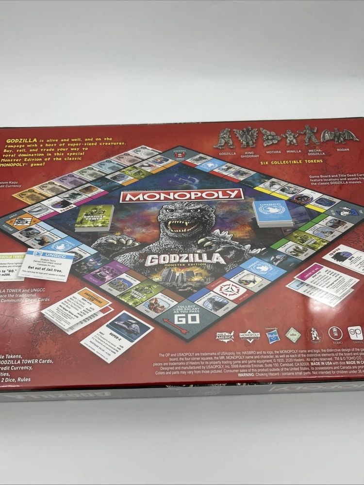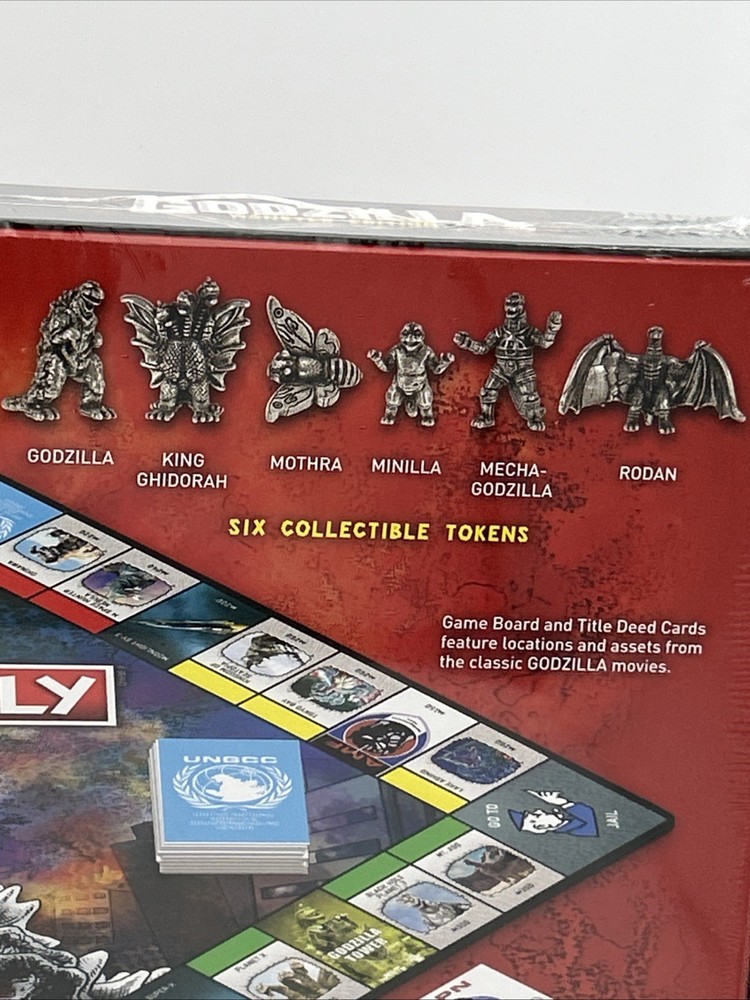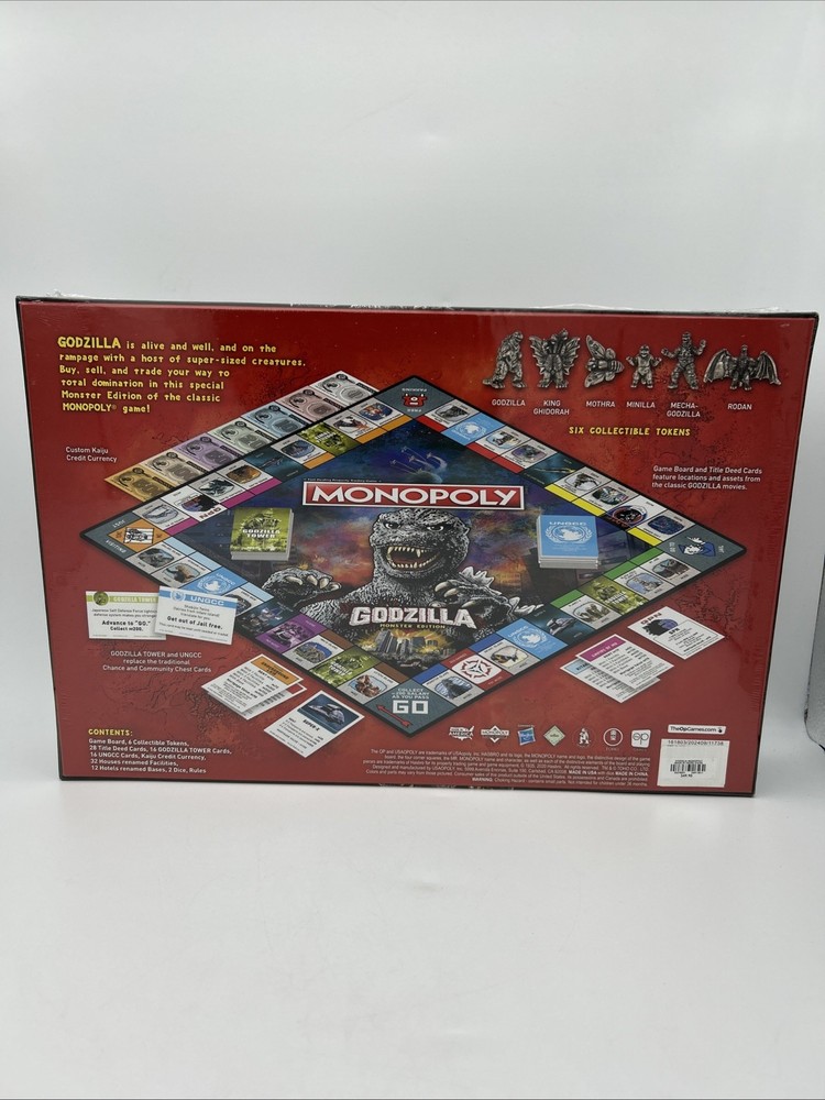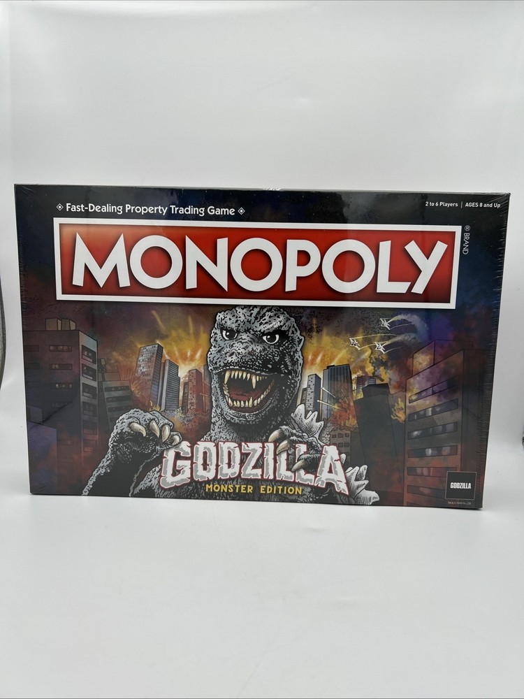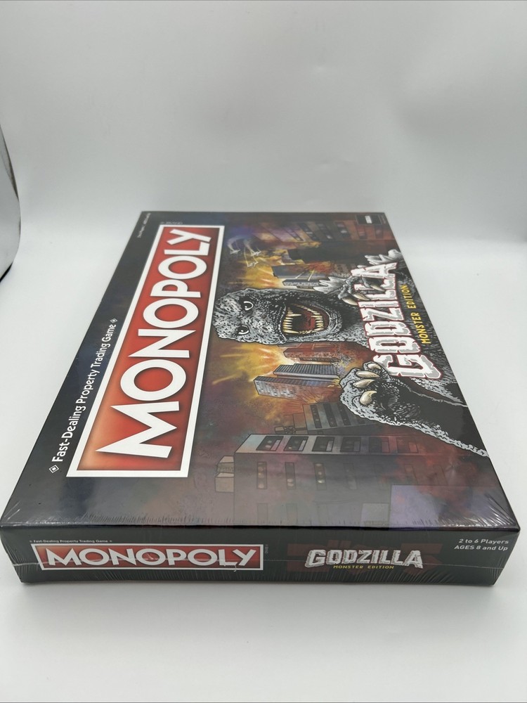Experience the thrill of owning the most notorious real estate in the world with the Monopoly: Godzilla Monster Edition Board Game. This brand new game board features the iconic Godzilla character family and is officially licensed. The game is perfect for 2 or more players and is recommended for ages 8 and up. Immerse yourself in the world of Monopoly with a twist as you buy, sell, and trade properties with the terror of Godzilla. This board game is a must-have for fans of movie and TV themes and is a great addition to any game collection. Don't miss out on the opportunity to own this unique and exciting edition of Monopoly.