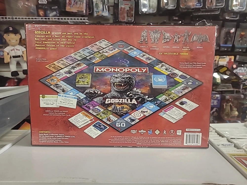 The Monopoly Godzilla Monster Edition board game by USAopoly is a thrilling twist on the classic Monopoly game, featuring the iconic Godzilla character. With a minimum of 2 players, this game is perfect for fans of the franchise and is officially licensed for added authenticity. Designed for ages 8 and up, this game is sure to provide hours of fun for both boys and girls who enjoy playing board games. Experience the world of Monopoly with a monstrous twist in this exciting new edition. SOLD AS IS