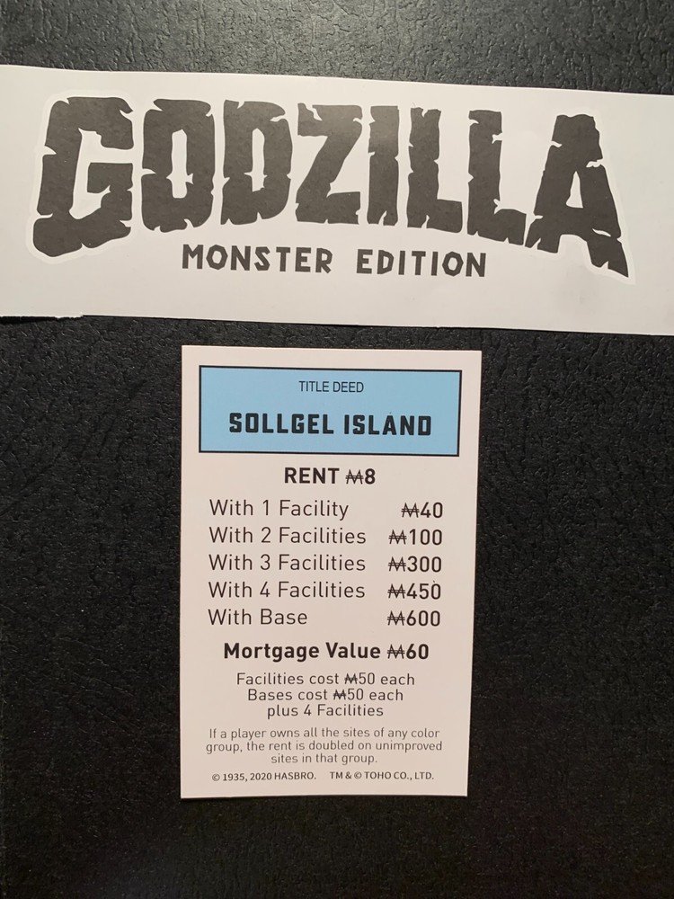 MONOPOLY GODZILLA MONSTER EDITION 2020 .. " SOLLGEL ISLAND " Title Deed Card...
