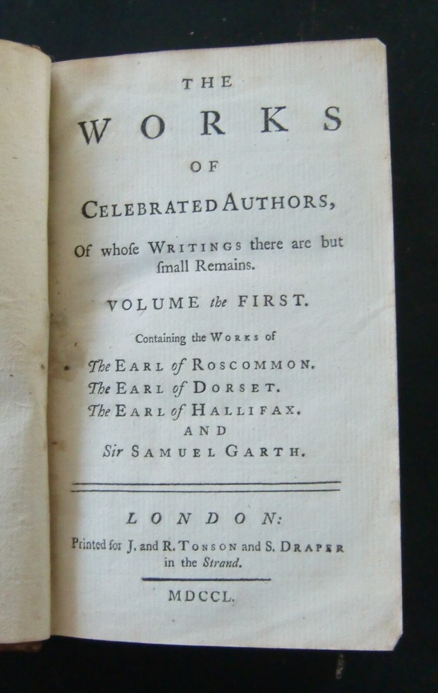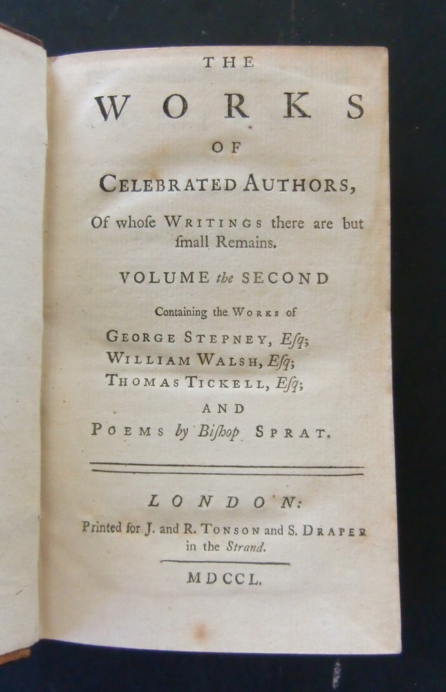 Printed for J. and R. Tonson and S. Draper, in the Strand, 1750: This two volume set 12mo (16 ½ cm x 10 ½ cm). is in Very Good condition. Original leather covered boards. The hinges are excellent. The books are tightly bound. They are internally free of foxing with the pages unmarked. The books are on the shelf and ready to ship. They will be shipped by priority mail at no extra charge. Please view the photos for a better idea of the condition. Thanks for looking. RP#18 $445.00 plus free shipping in the USA Email for overseas rates