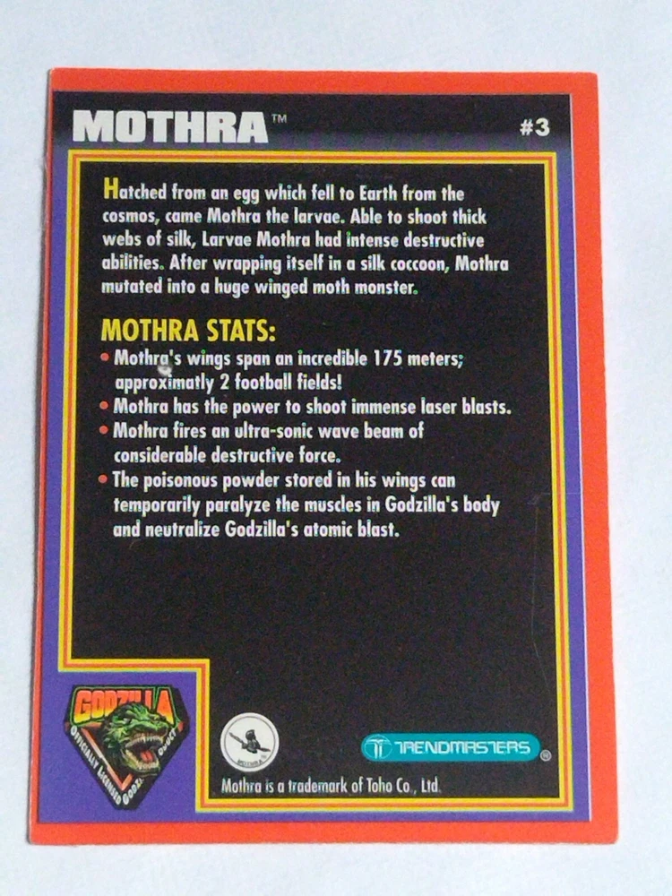 Powered by Frooition tofutofutofu Mothra #3 Trading Card 1994 Toho Co.,Ltd. Trendmasters Rare Item Description Mothra #3 Trading Card 1994 Toho Co.,Ltd. Trendmasters More Items! View more great items Pokémon TCG Honedge Primal Clash 98/160 Regular Common $4.69 Pokémon TCG Minccino Next Destinies 84/99 Regular Uncommon $8.70 Pokémon TCG Venonat Phantom Forces 1/119 Reverse Holo Common $4.39 The Fountainhead Book By Ayn Rand $6.64 Listed by Frooition Frooition | No-js Template | eBay design, eBay store design, eBay shop design, eBay template design, eBay listing design, eBay Listing Tool (ver:froo_no_js)