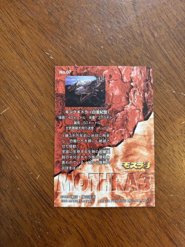 This Mothra 3 set is a must-have for collectors! The bold red packaging looks amazing, and while it includes just one card, the 34 original card holders make it ideal for completing or restoring a collection. A fantastic find for any fan of the series!