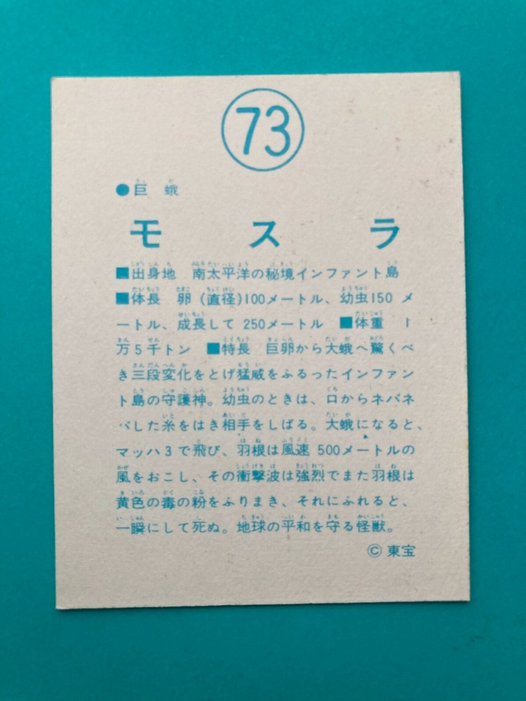 1973 Toho Godzilla vs Mothra Yamakatsu Rare Japanese Trading Card