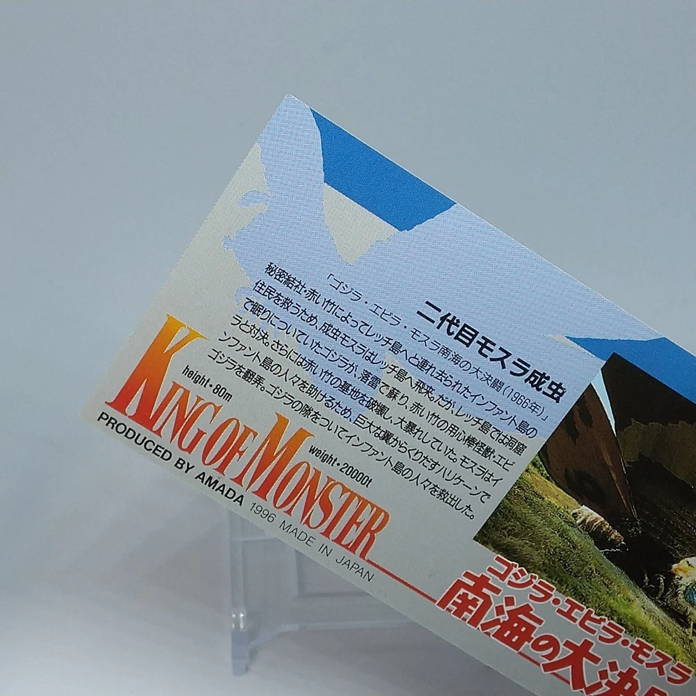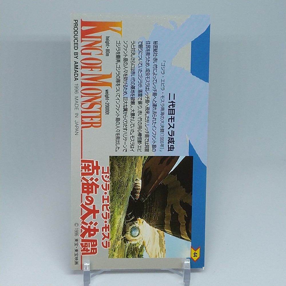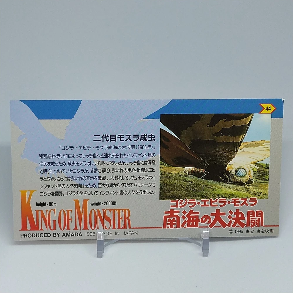 Mothra Adult Insect King of Monster Amada Wide Collection Card No.44 1996 Description Please see the picture for the details of damages and dirt or ask us before your purchase. 100% Authentic or Money Back Guaranteed. (Do not worry you are protected by eBay and eBay Managed Payments) See the pictures for more details. If you have any question about the condition, accessories, or anything about the product, please feel free to message us. We are glad to answer all your concerns. Payment Same as ebay payment method. Shipping Economy shipping: Delivery time will be about 11 - 23 days. Standard shipping: Delivery time will be about 5 - 10 days. Expedited shipping: Delivery time will be about 1 - 4 days. Terms of Sale Money back guarantee within 30 days if returned by customer. We would not be able to accept your bid if you; 1) Don't have a PayPal account. 2) Have unpaid items reported. 3) Have a primary shipping address in countries you don't ship to. 4) Have reportedly violated eBay policies. 5) Have a Feedback score lower than the number you specify. International Buyers - Please Note: Import duties, taxes and charges are not included in the item price or shipping charges. These charges are the buyer's responsibility. Please check with your country's customs office to determine what these additional costs will be prior to bidding/buying. These charges are normally collected by the delivering freight (shipping) company or when you pick the item up - do not confuse them for additional shipping charges.