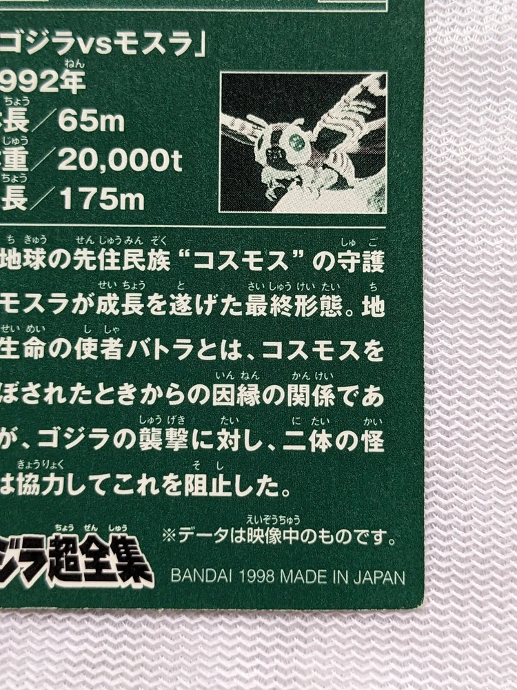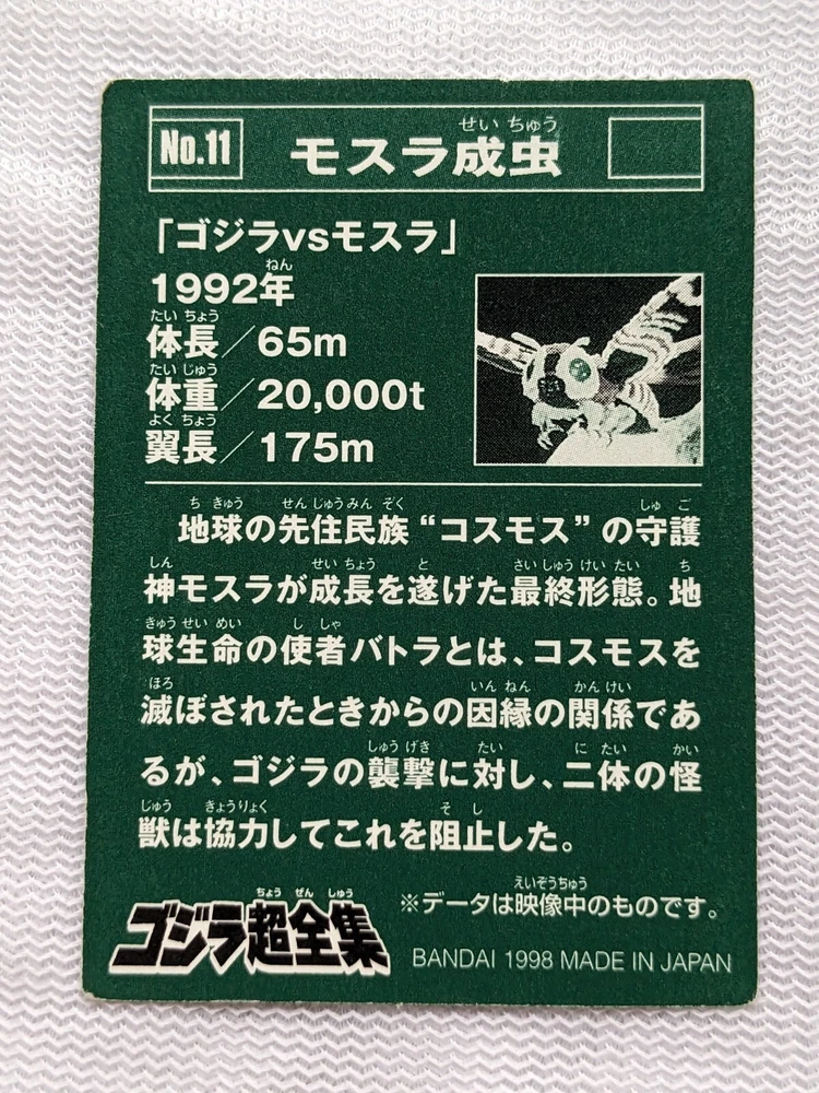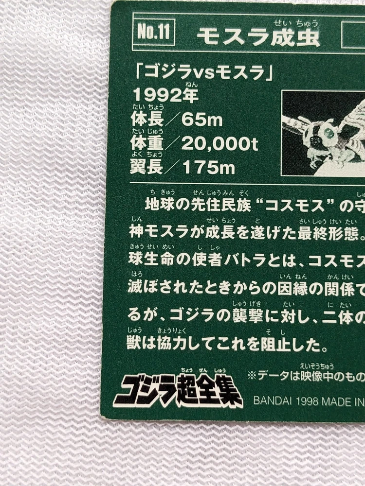 Bandai Mini Card Mothra 2.8x2.0 Japanese Retro Toho No.11 1998 Toei