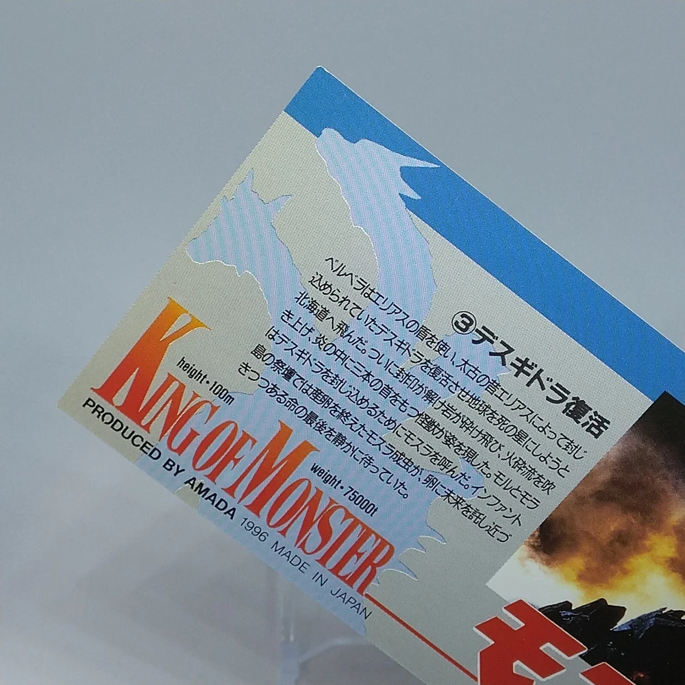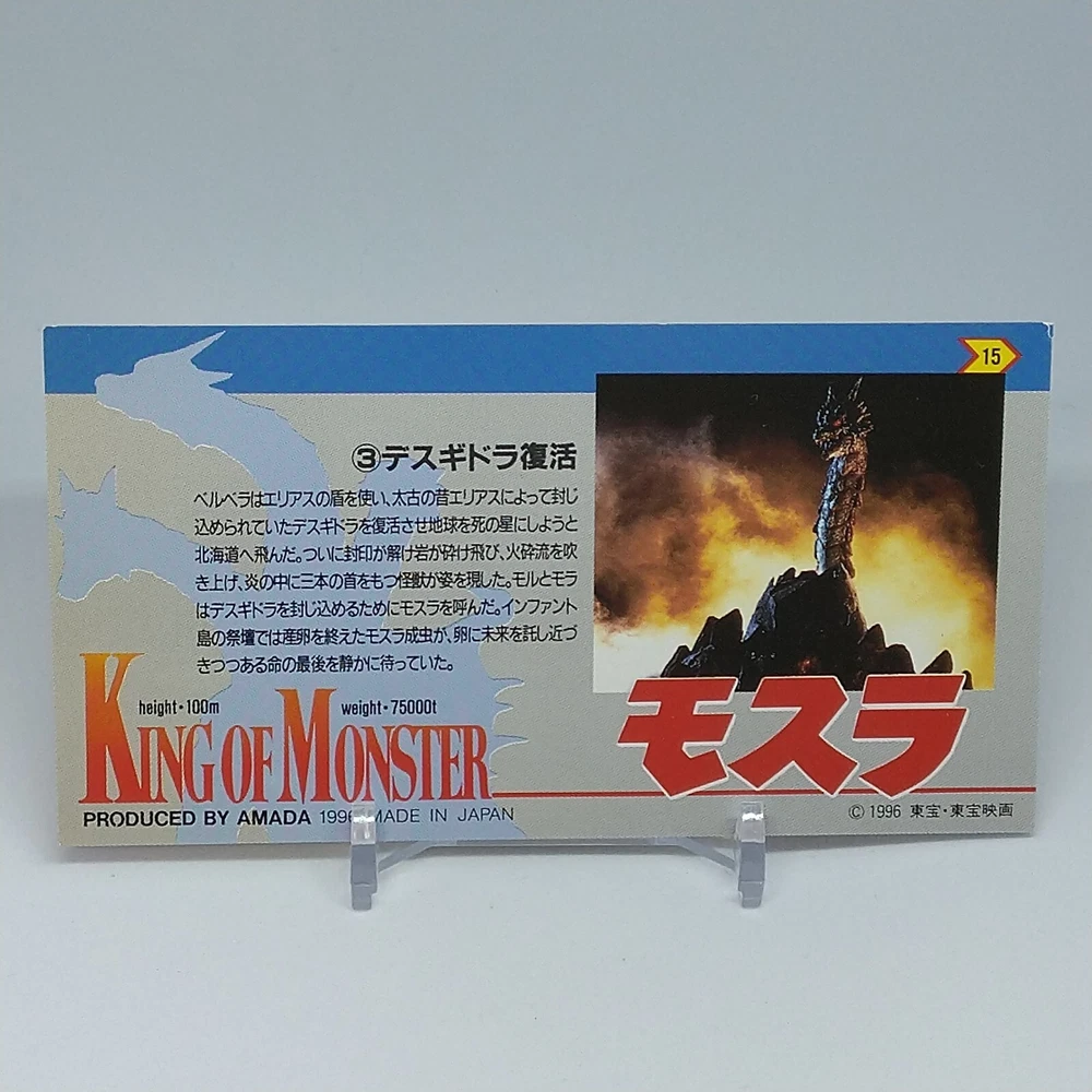 Mothra Desghidorah King of Monster Amada Wide Collection Trading Card No.15 1996 Description Please see the picture for the details of damages and dirt or ask us before your purchase. 100% Authentic or Money Back Guaranteed. (Do not worry you are protected by eBay and eBay Managed Payments) See the pictures for more details. If you have any question about the condition, accessories, or anything about the product, please feel free to message us. We are glad to answer all your concerns. Payment Same as ebay payment method. Shipping Economy shipping: Delivery time will be about 11 - 23 days. Standard shipping: Delivery time will be about 5 - 10 days. Expedited shipping: Delivery time will be about 1 - 4 days. Terms of Sale Money back guarantee within 30 days if returned by customer. We would not be able to accept your bid if you; 1) Don't have a PayPal account. 2) Have unpaid items reported. 3) Have a primary shipping address in countries you don't ship to. 4) Have reportedly violated eBay policies. 5) Have a Feedback score lower than the number you specify. International Buyers - Please Note: Import duties, taxes and charges are not included in the item price or shipping charges. These charges are the buyer's responsibility. Please check with your country's customs office to determine what these additional costs will be prior to bidding/buying. These charges are normally collected by the delivering freight (shipping) company or when you pick the item up - do not confuse them for additional shipping charges.